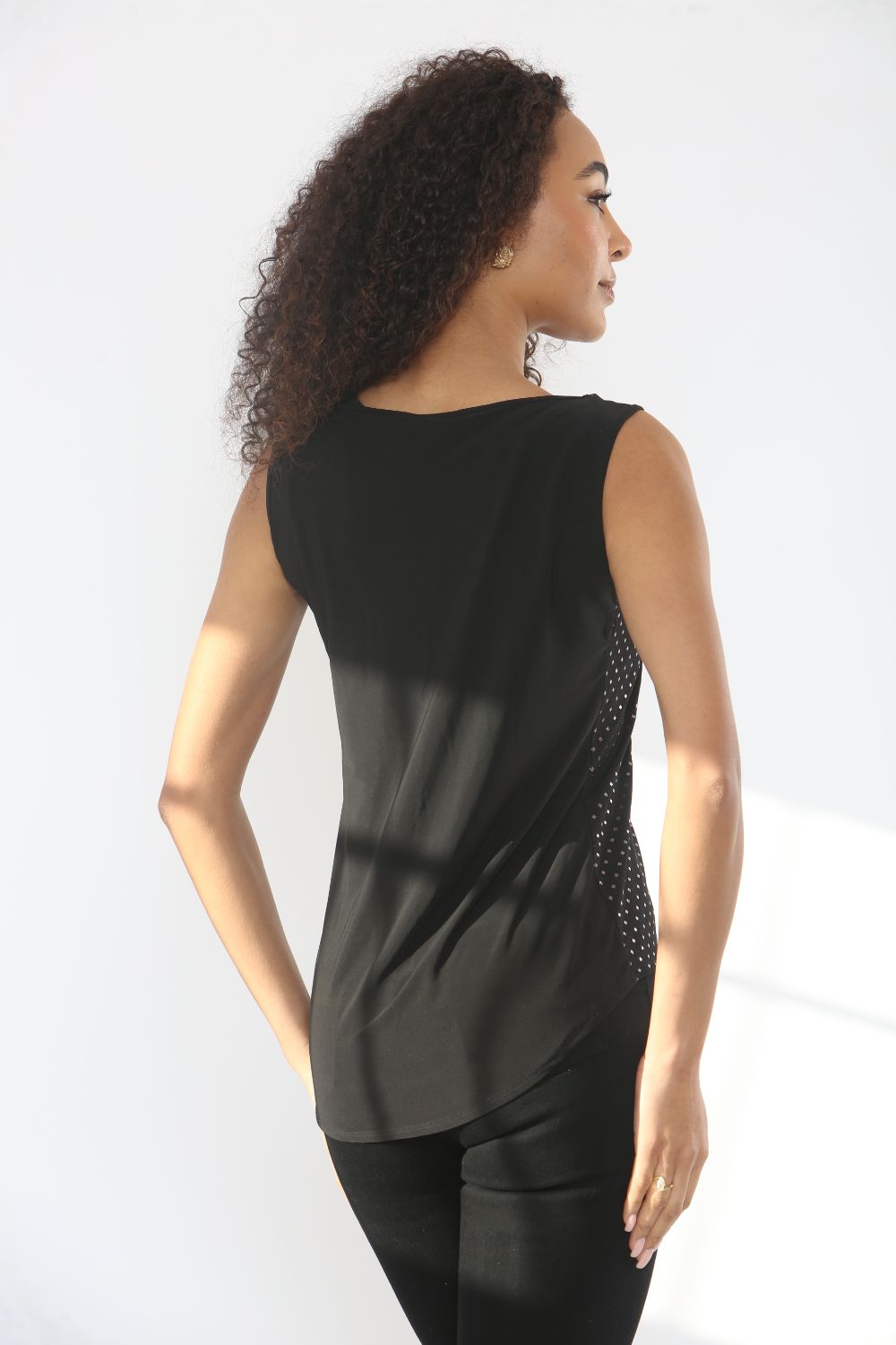 Crafted from a lightweight, comfortable fabric, it offers a flattering fit that moves beautifully with you. The sleeveless design makes it ideal for layering under jackets or cardigans, while still looking polished on its own.