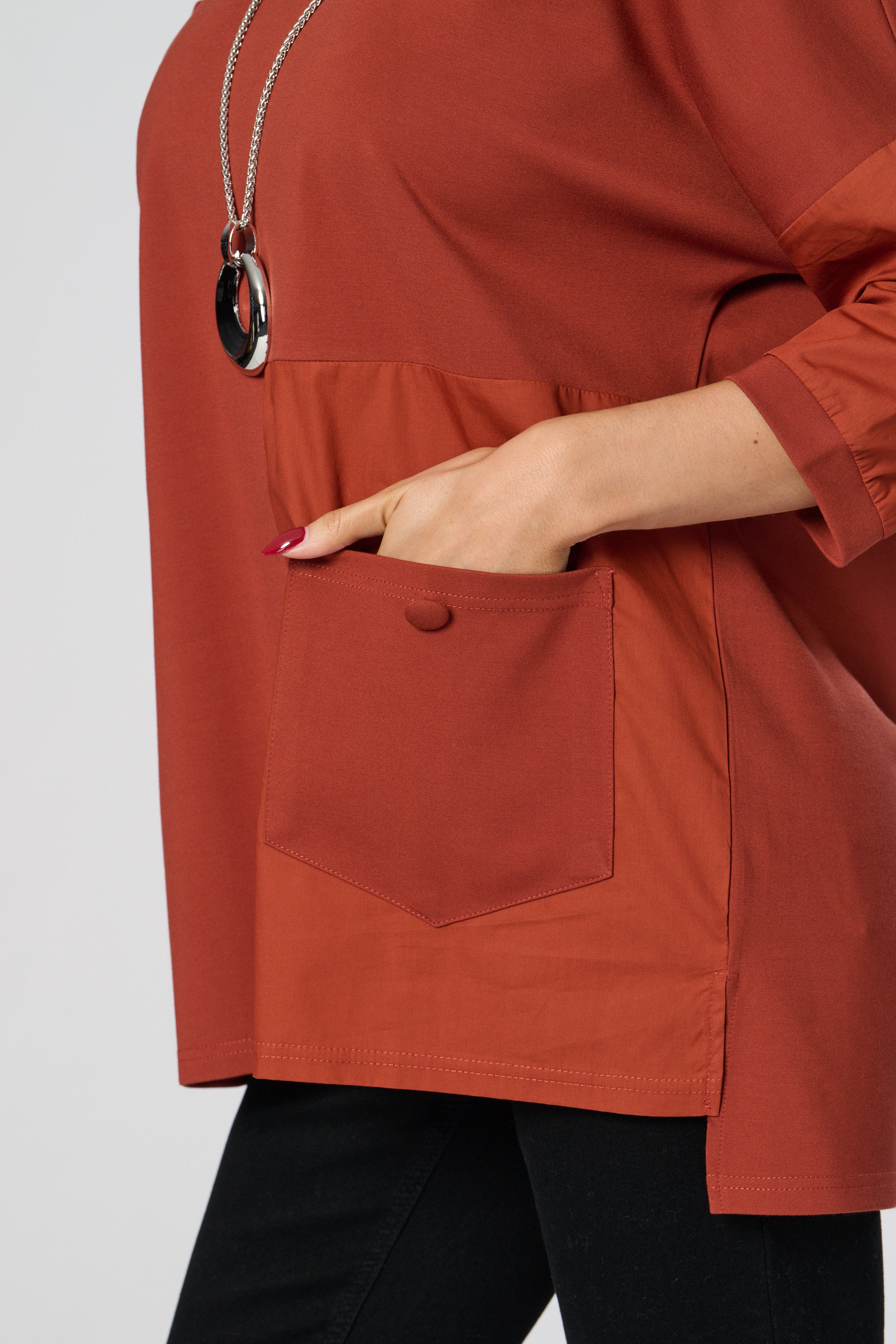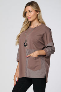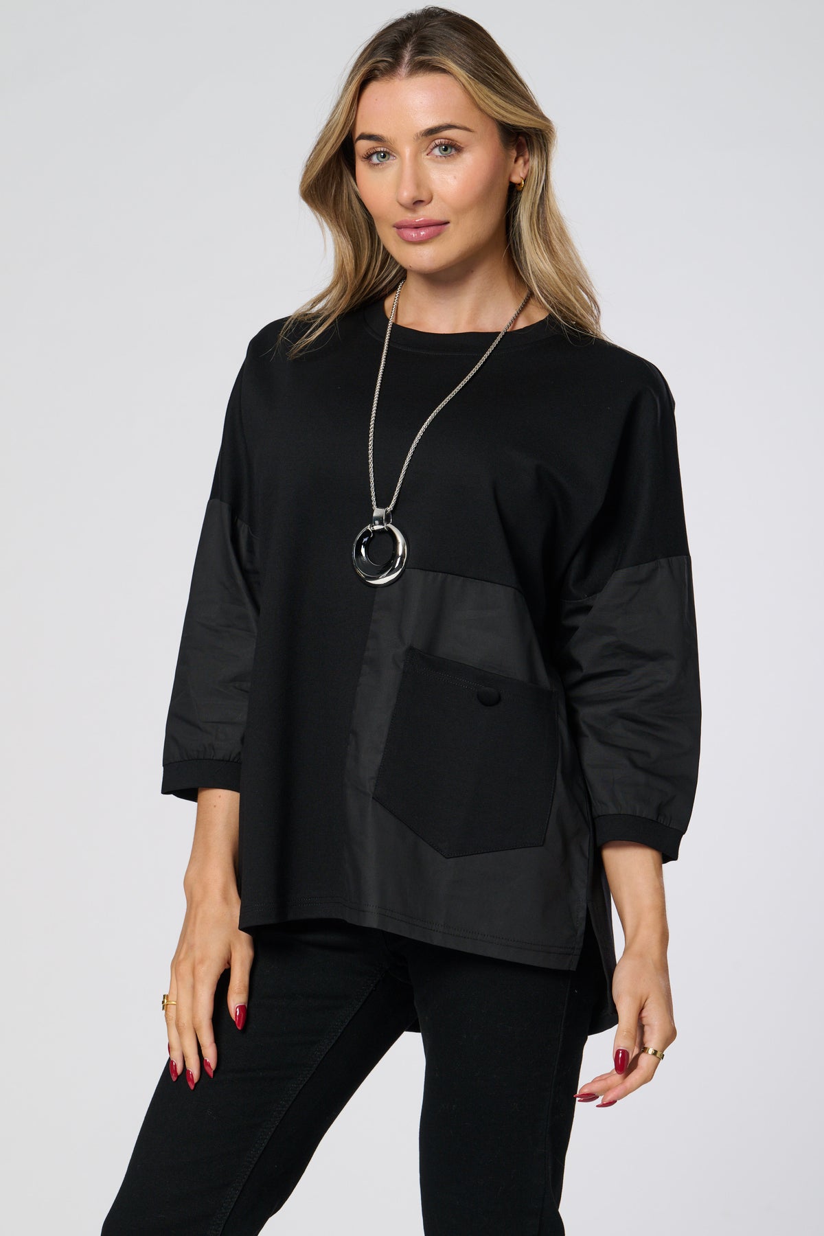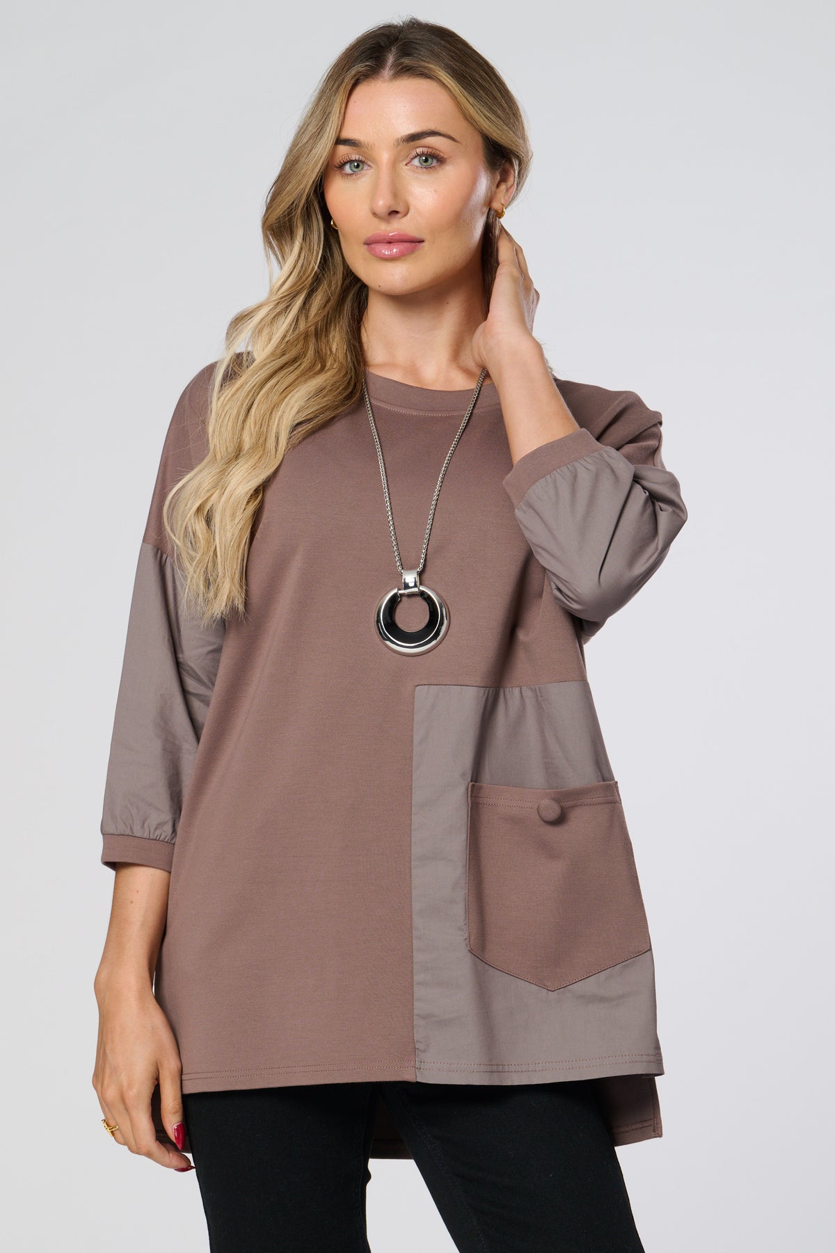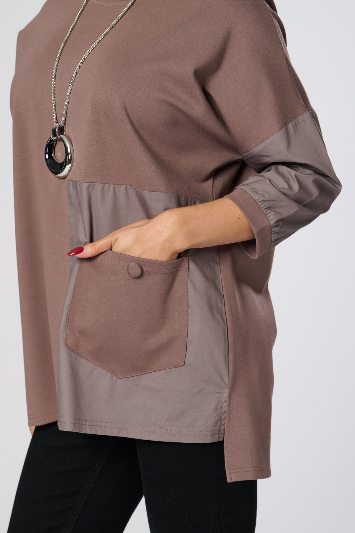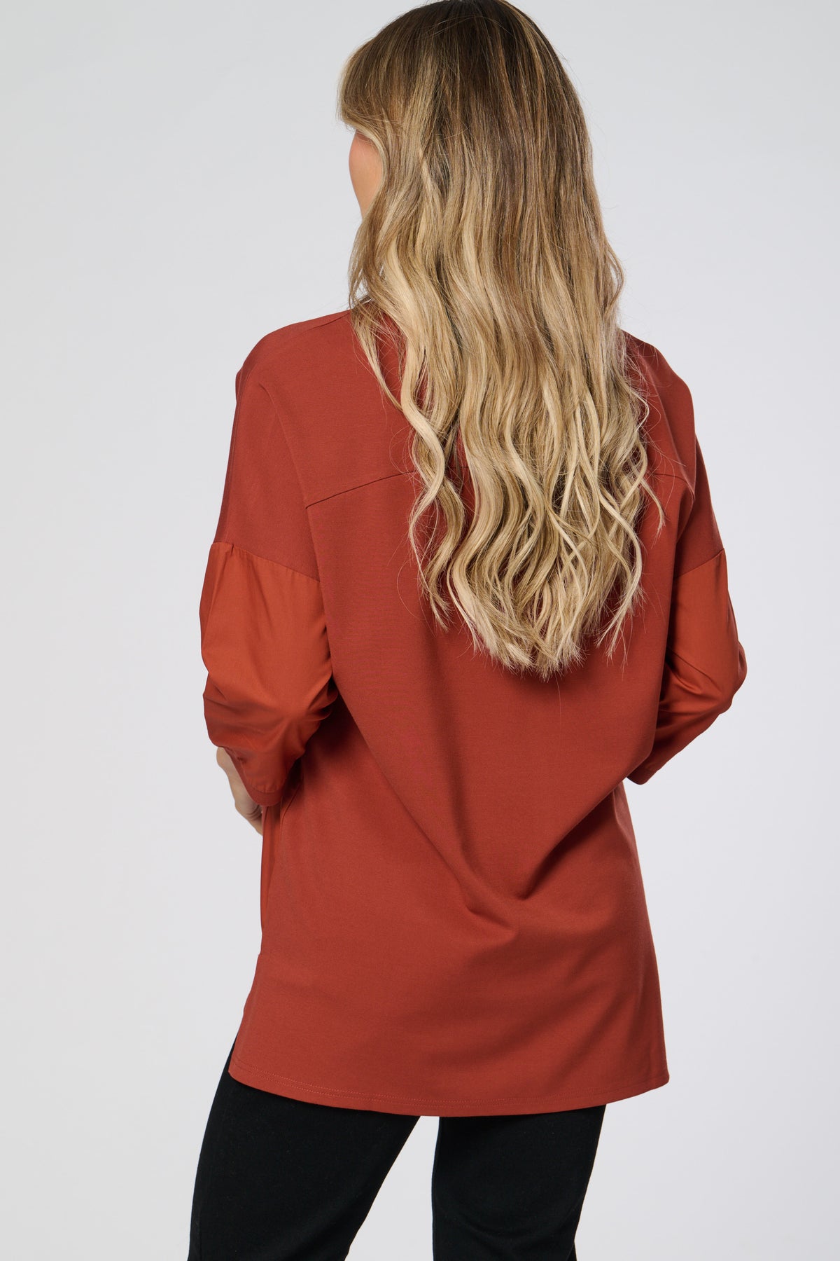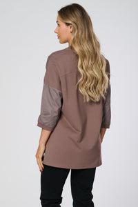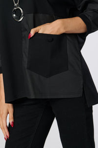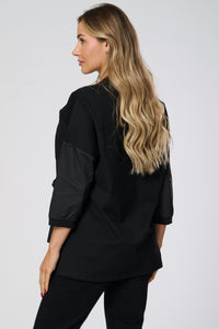 This double fabric top features a front patch pocket, dropped armholes, and gathered cuffs, providing increased durability and functionality. With its versatile design, this top is perfect for any occasion.