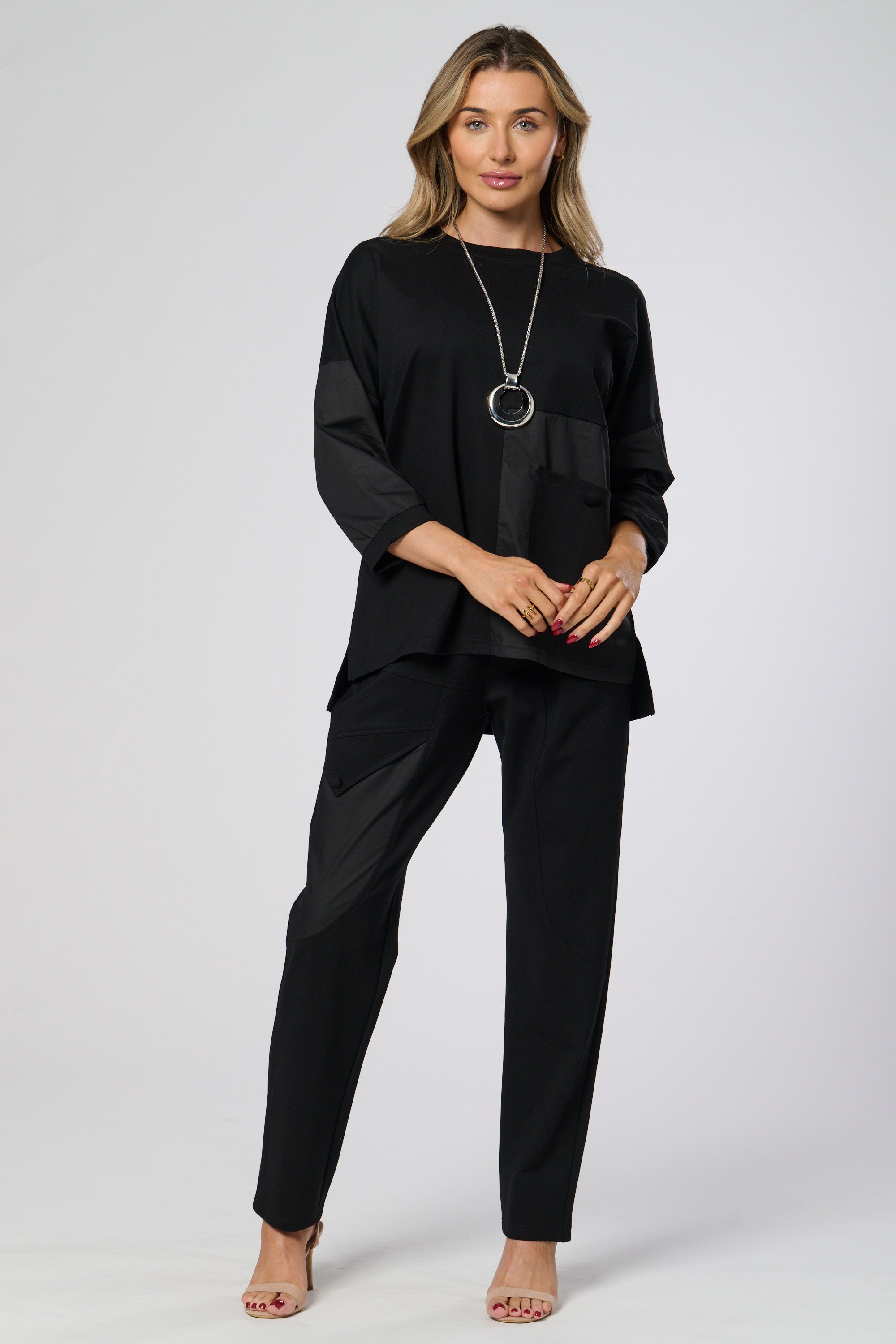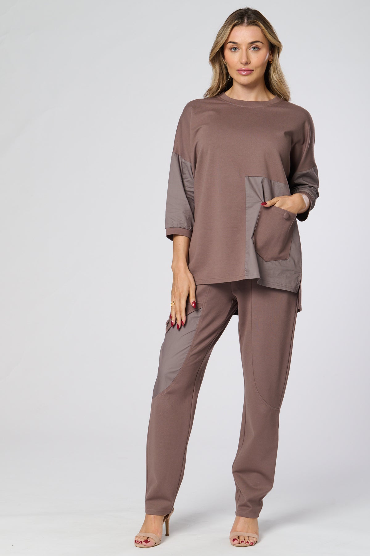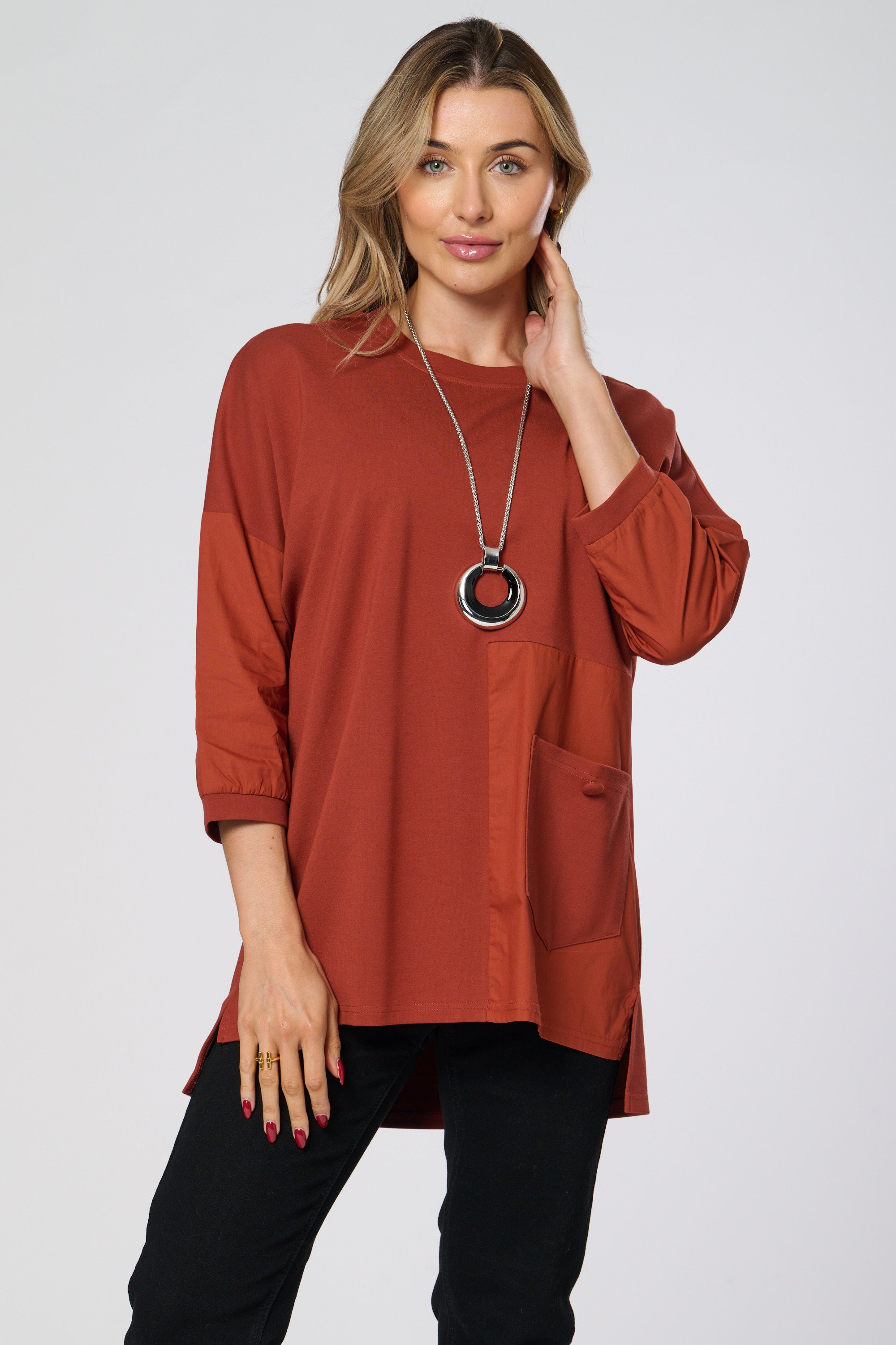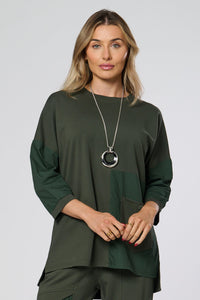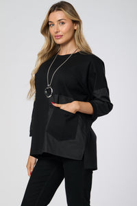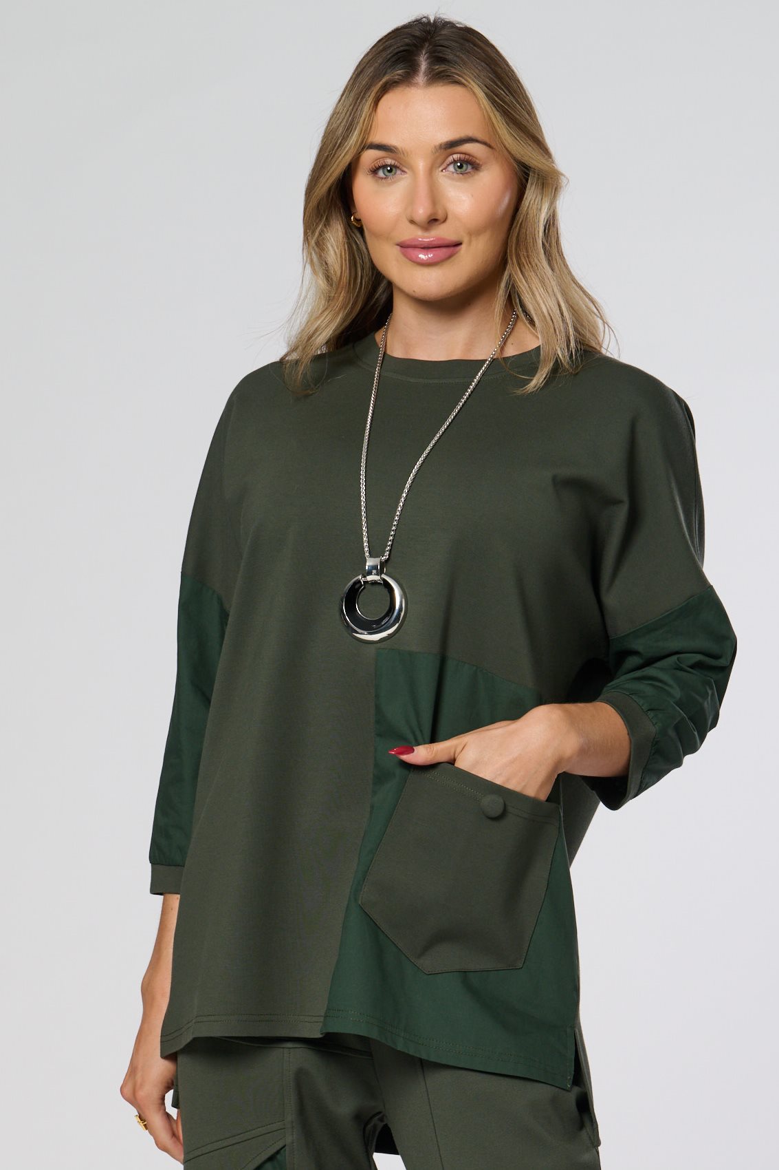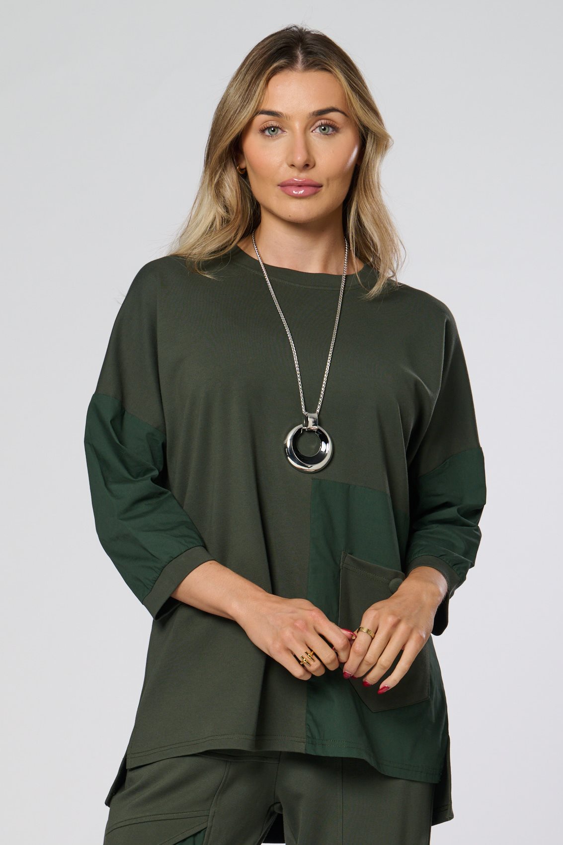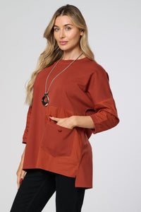 This double fabric top features a front patch pocket, dropped armholes, and gathered cuffs, providing increased durability and functionality. With its versatile design, this top is perfect for any occasion.