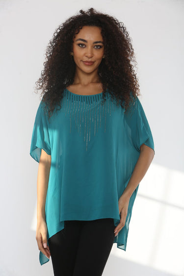 Feel confident, comfortable, and beautifully festive in this teal batwing chiffon top—your new go-to for the holiday season.