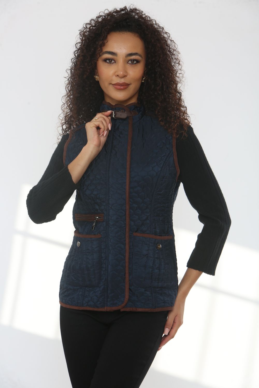Saloos Women's Quilted Gilet With Brown Suede Trimming