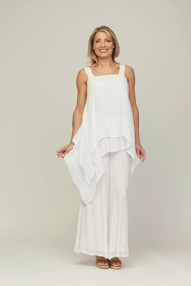 Look great and stay cool in this top. Constructed with a double layer of breathable, lightweight fabric, it features strappy open shoulders and a hanky hem for a stylish, relaxed look. Whether you're going for a casual outing or a more formal setting, this top is sure to be a summer staple.