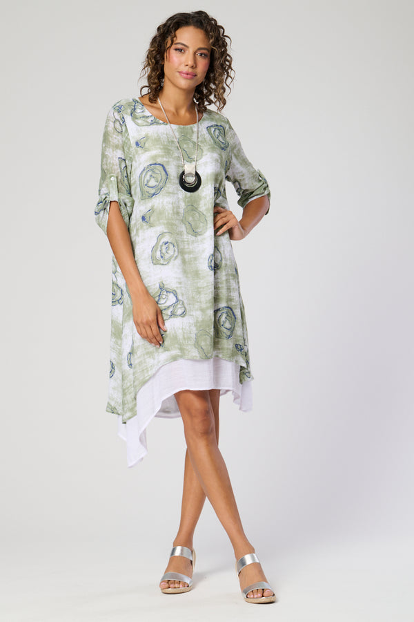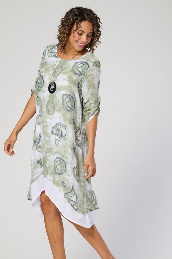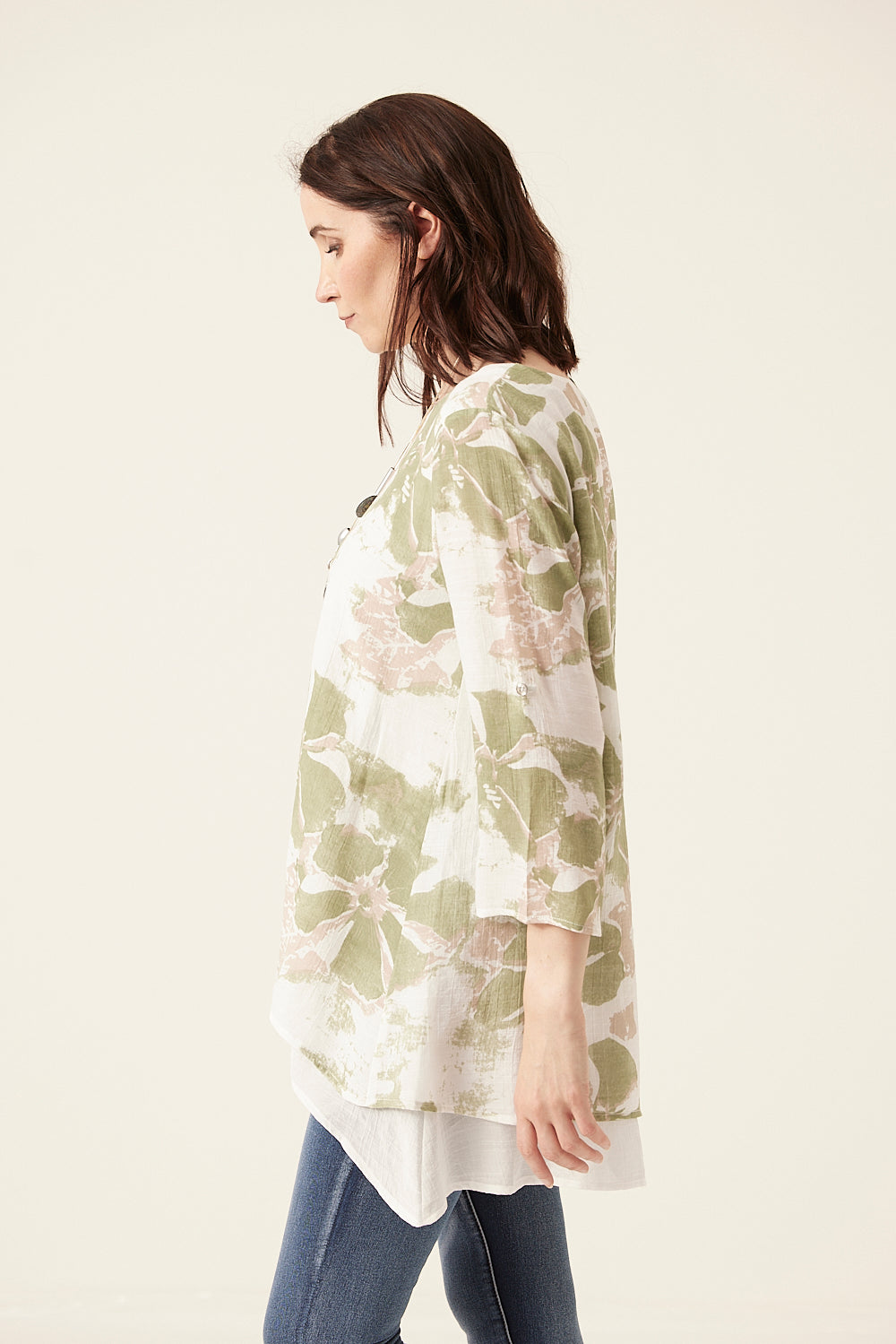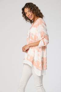 Saloos Ruched Sleeves Double Layer Top with Necklace