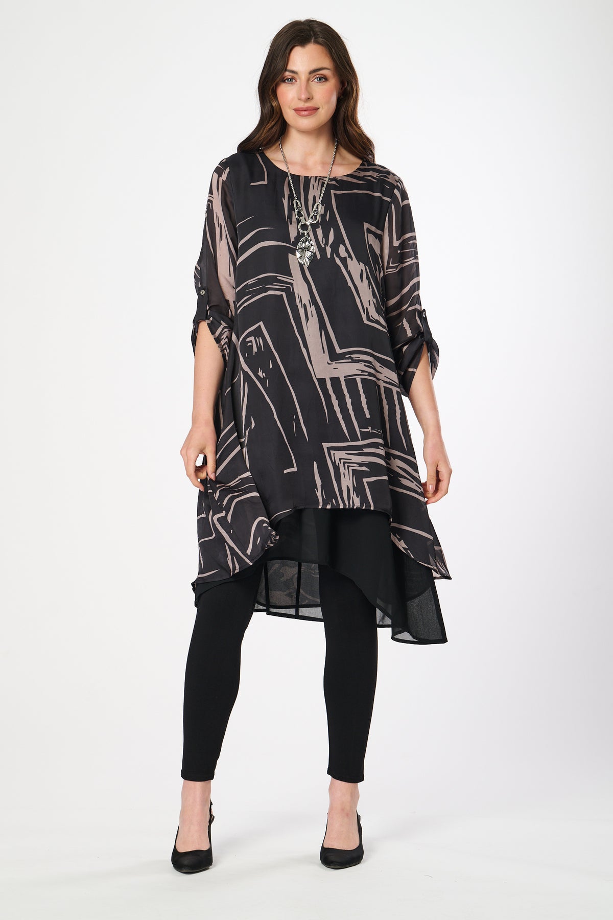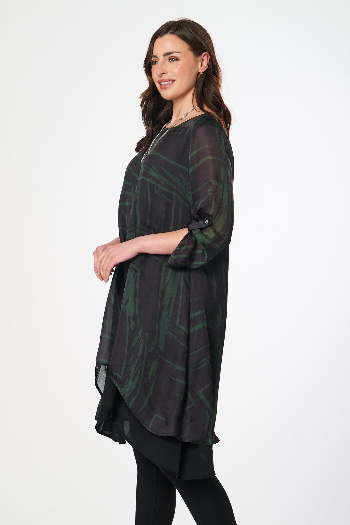 Saloos Ruched Sleeve A-line Dress with Necklace