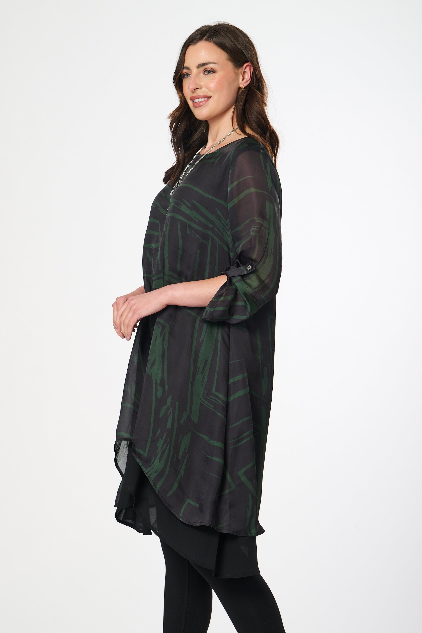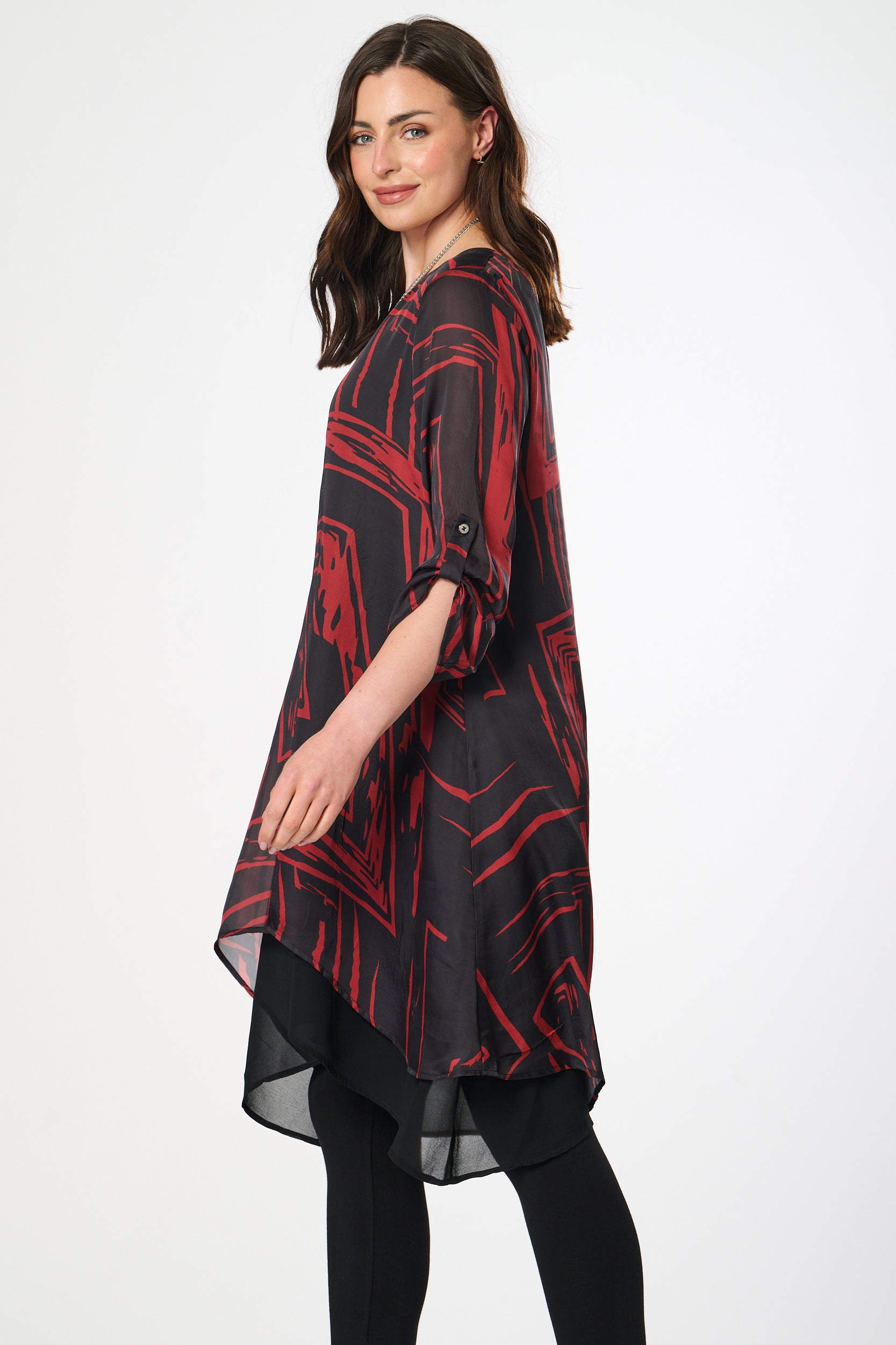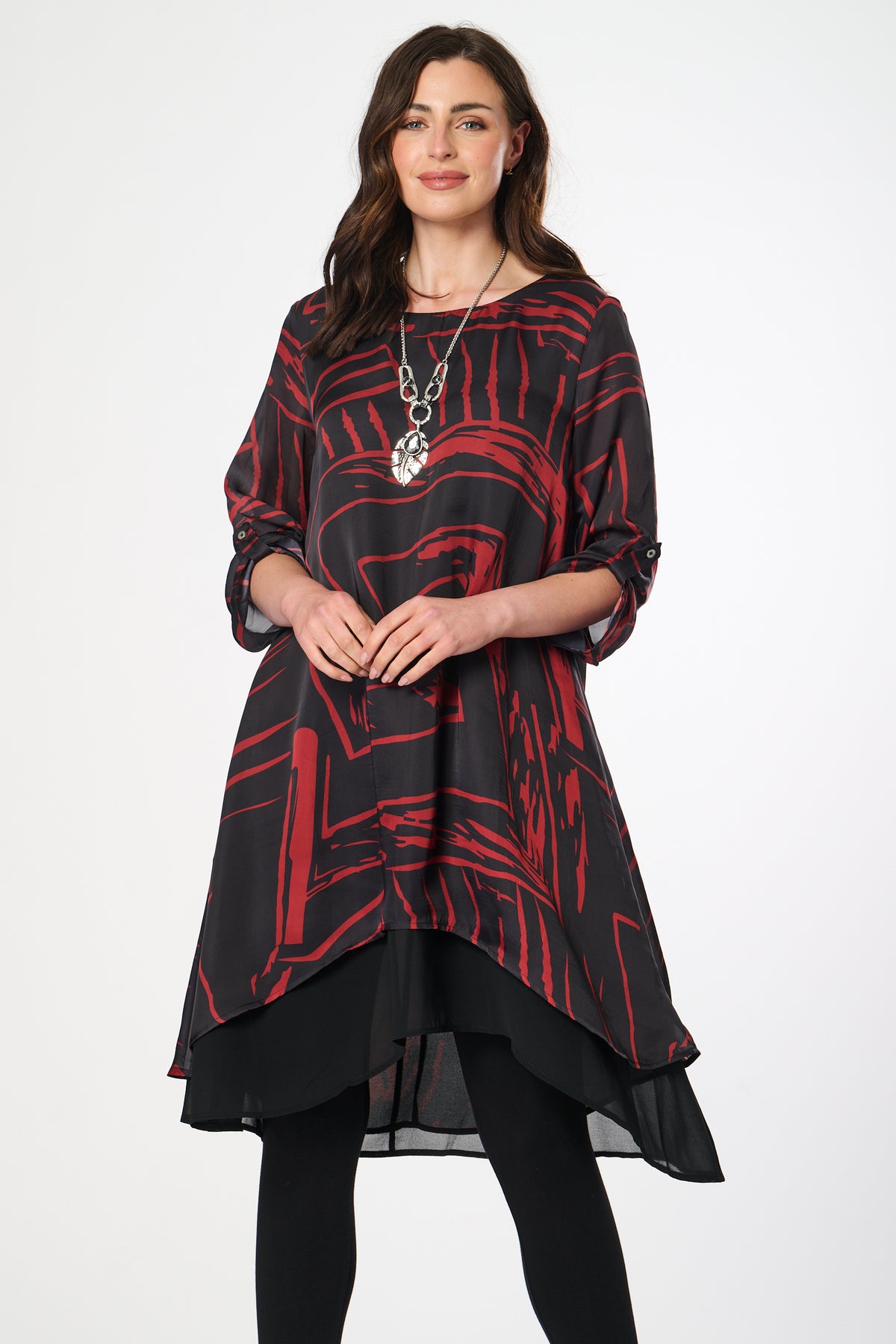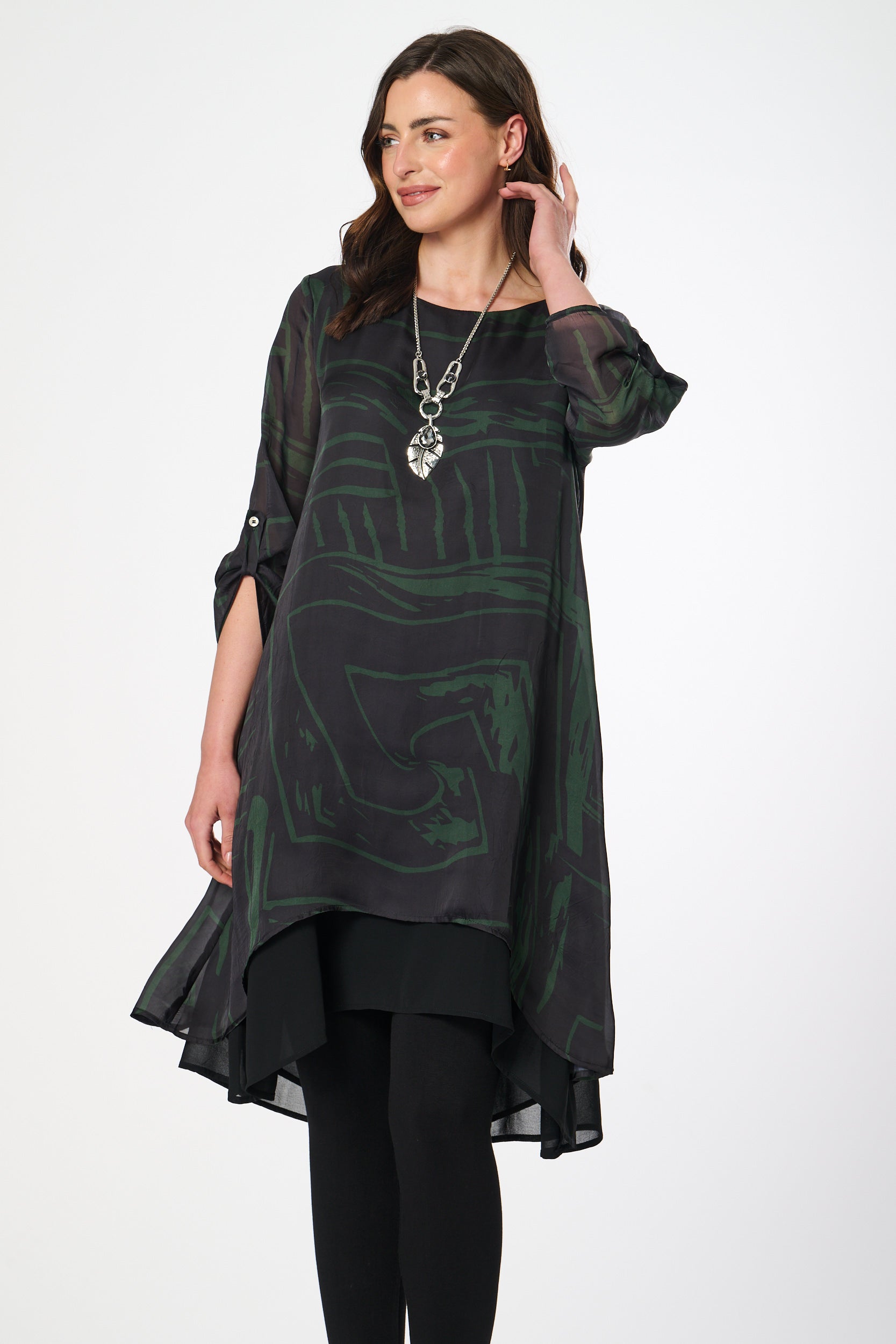 Get ready to turn heads with this A-line Dress! Featuring a double-layer design and ruched sleeves for added sophistication, it combines comfort and elegance with its crew neck and flattering A-line silhouette. The knee-length cut, elegant high-low hem, and included necklace make it a versatile must-have for any occasion. A perfect blend of quality and fashion, this dress is an essential addition to your wardrobe!