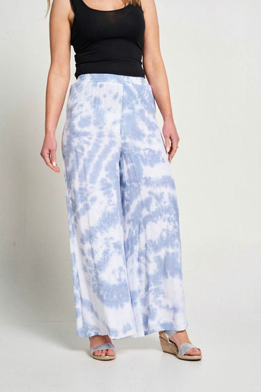 Upgrade your wardrobe with these trousers. Enjoy the comfort of double layer and elasticated waist, while looking effortlessly stylish with the wide floaty leg. Made from lightweight fabric with a trendy tie & dye pattern, these trousers will be your go-to for any occasion.
