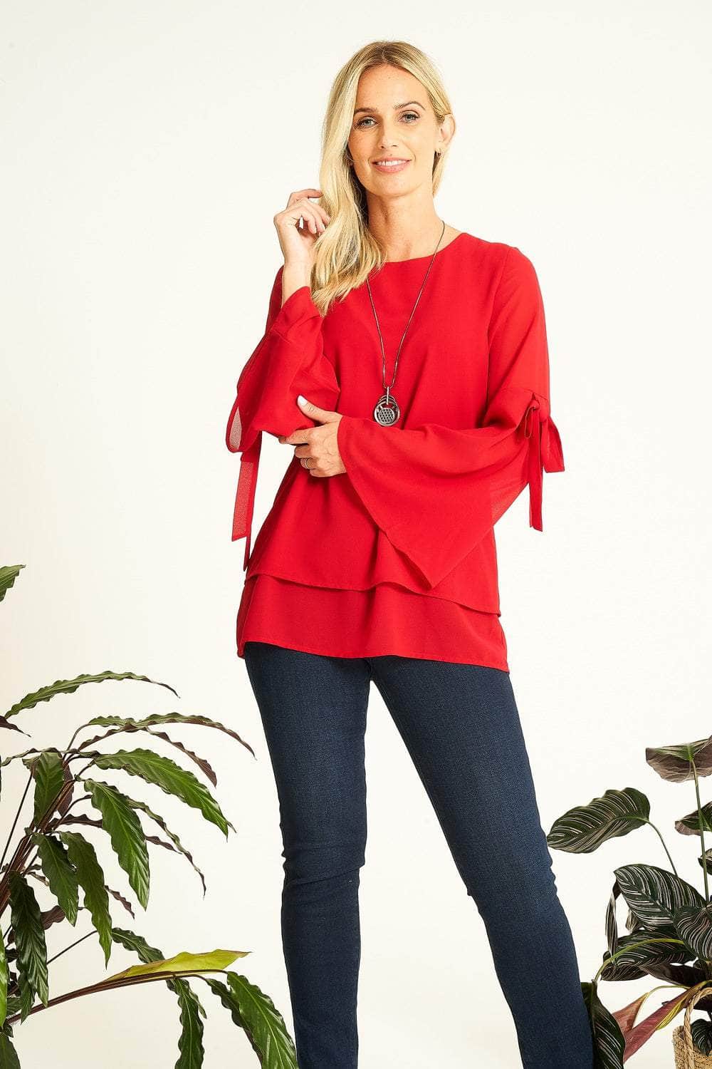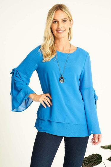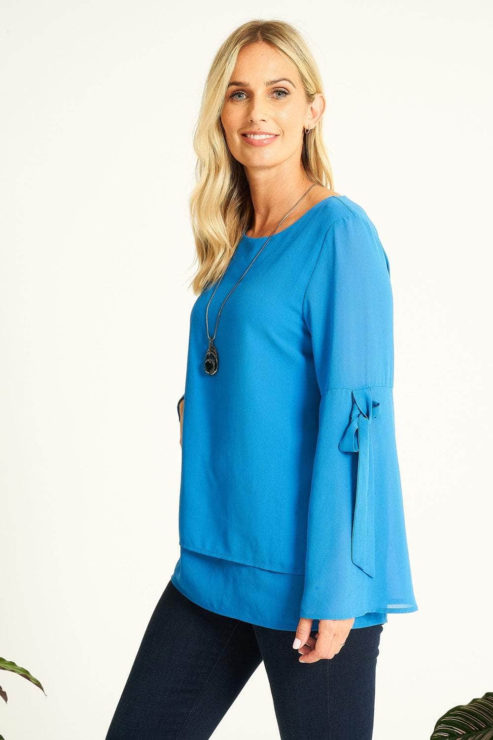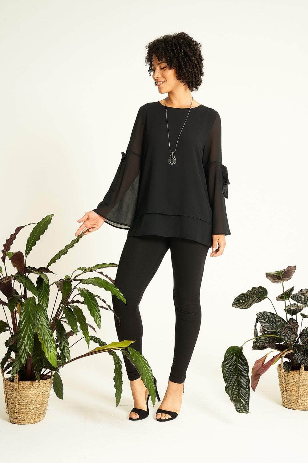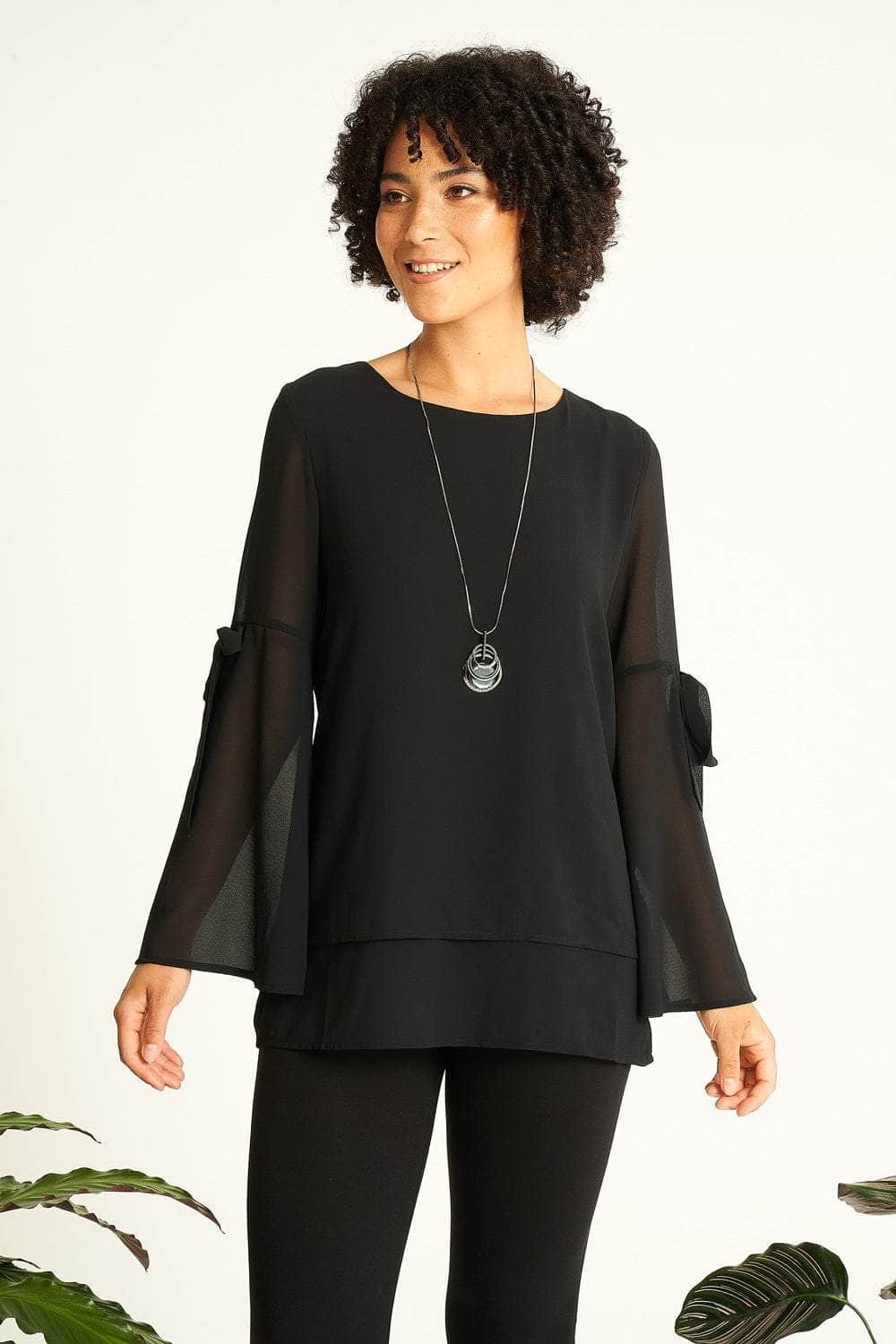 Saloos Bell Sleeves Sheer Tunic Top with Necklace