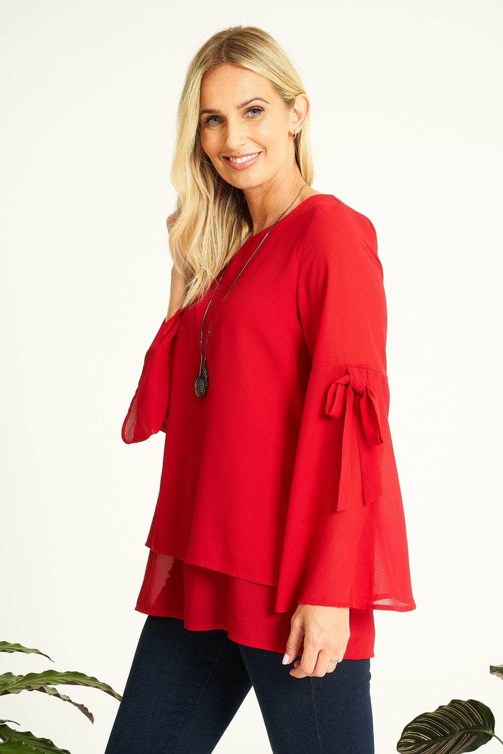 Indulge in the elegance of our Bell Sleeves Sheer Tunic Top! This alluring top showcases a circular neckline, charming bell sleeves with bow accents, and even comes with a matching necklace.