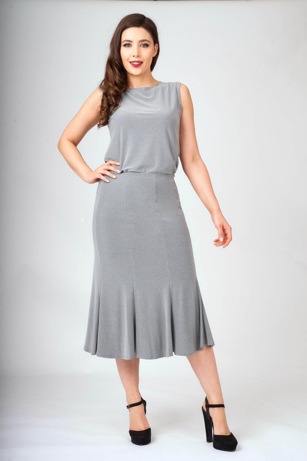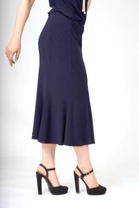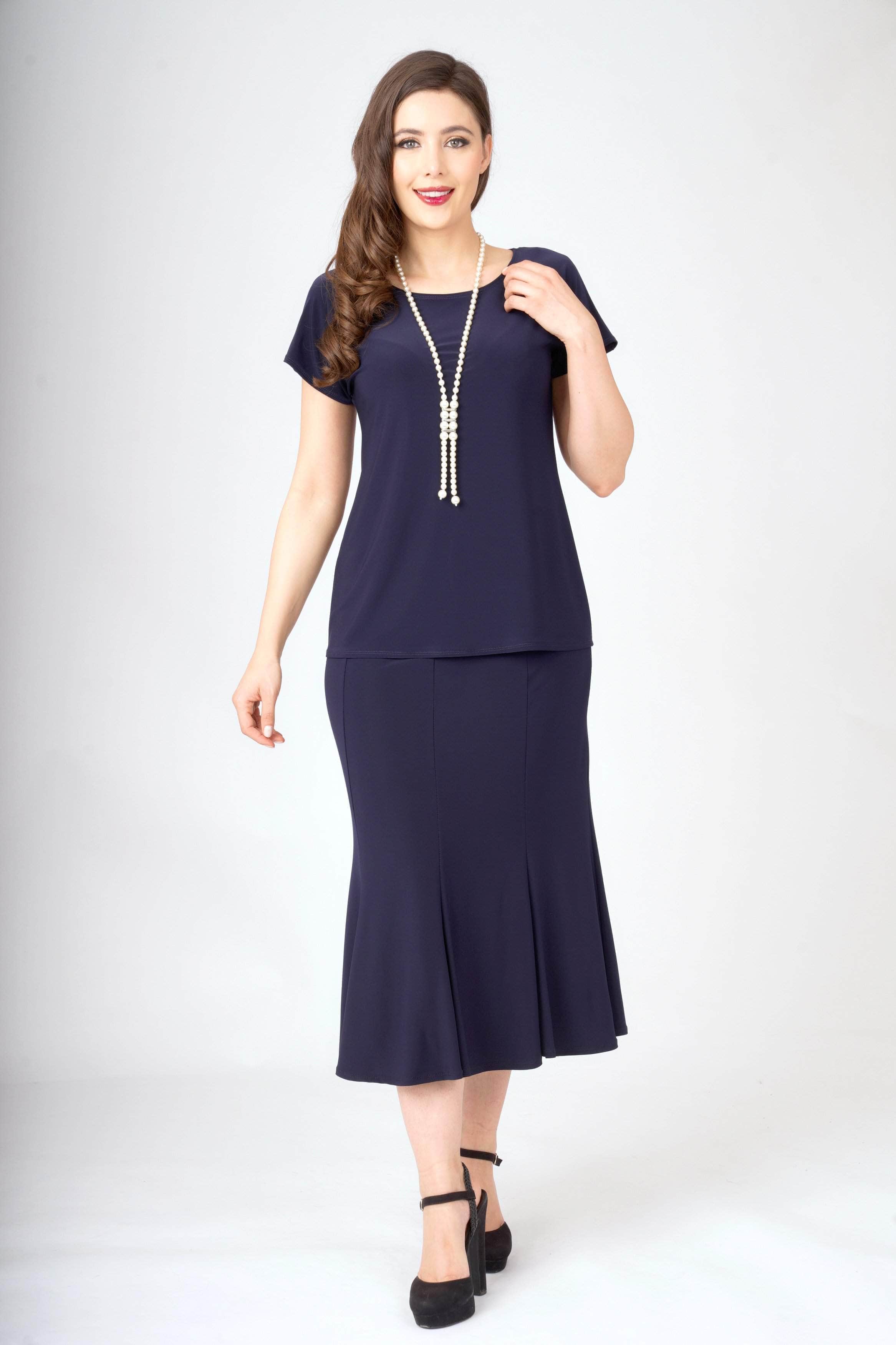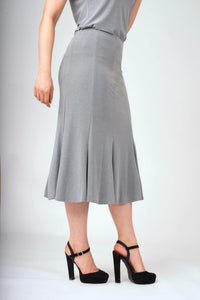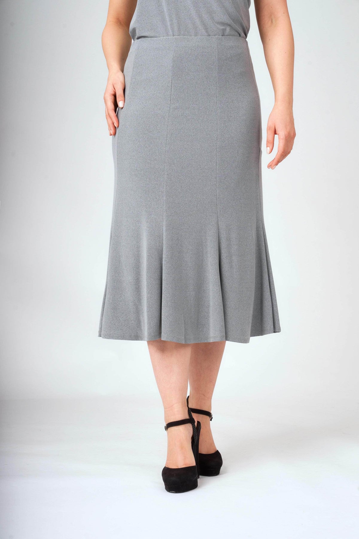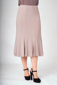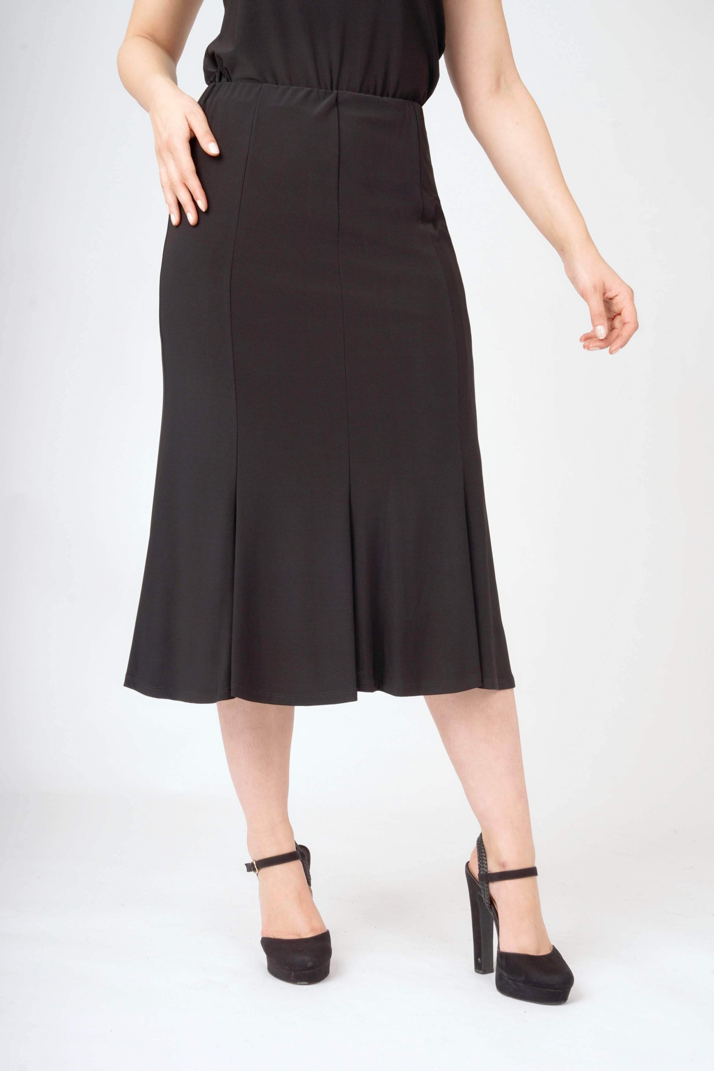 An elasticated flared midi-skirt with pleats made from a sumptuously soft, smooth stretch fabric.