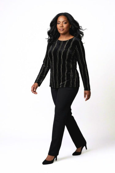Saloos Women’s Textured Velvet Long Sleeve Striped Top