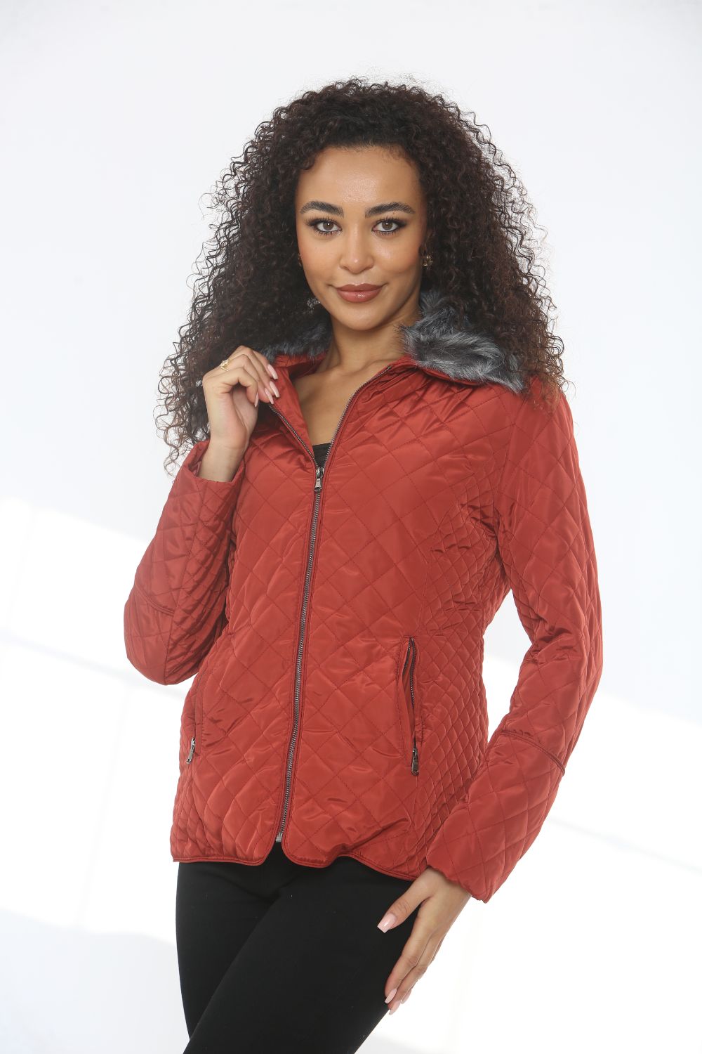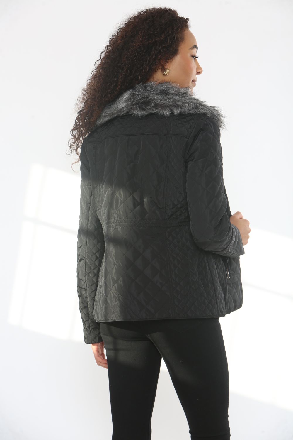Saloos Women’s Quilted Zip-Up Jacket with Faux Fur Collar