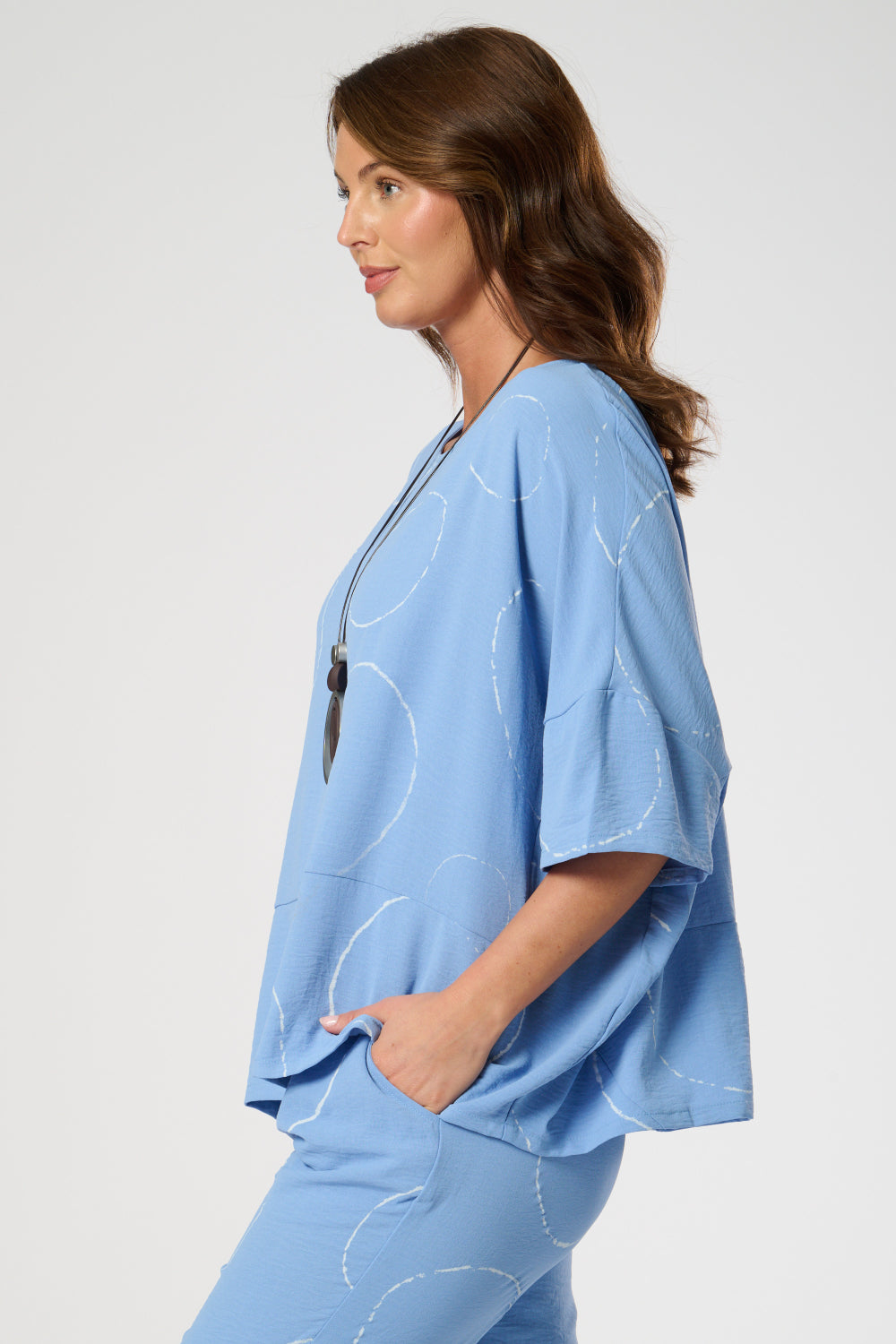 This oversized printed short top is your new favourite for effortless style! Featuring a modern boat neck and medium-length sleeves, it offers a relaxed fit perfect for layering or wearing alone. The striking high-low hem and unique printed design add personality to any outfit, ensuring you stand out in any setting.