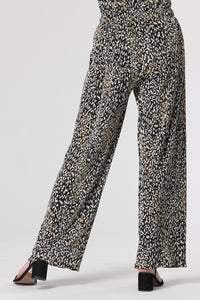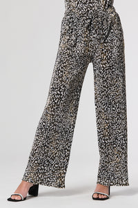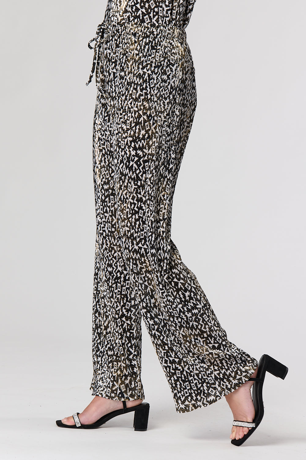 Experience modern comfort with this trousers. Featuring a wide leg design and an elasticated waist, these trousers provide a comfortable fit. The geometric pleated pattern is elevated by golden foil lines, creating an eye-catching, stylish look.