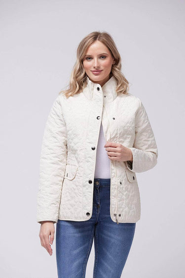 This jacket is a stylish and practical choice for colder days. Lightweight and with a regular fit, it has long sleeves and a quilted stitching pattern. It's secured by a zip and button up fastening and features a stand up collar and two front pockets with flap and popper closure. Perfect for chilly days.