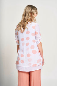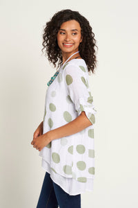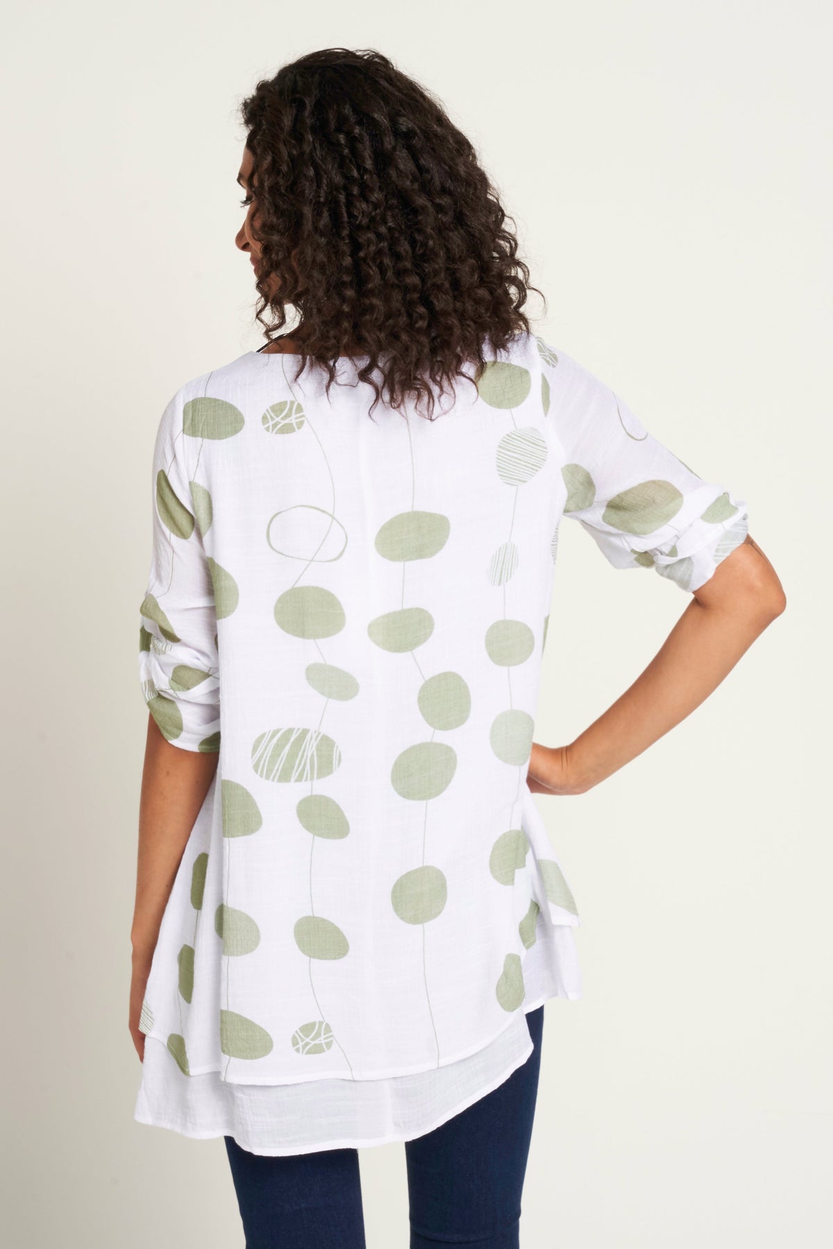 Saloos Linen Look Ruched Sleeve Top with Necklace