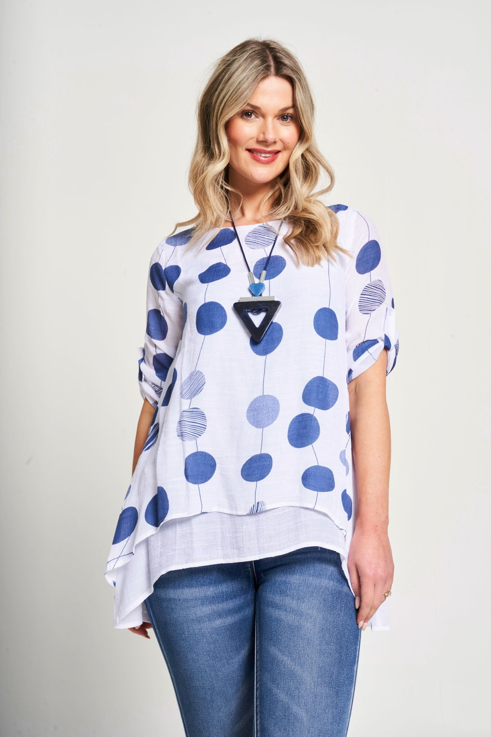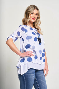 This top features a double layer design, with a high-low hem and lightweight fabric. The ruched sleeves add a touch of style, while the round neck and matching necklace* complete the look. Perfect for any occasion, this top is both comfortable and fashionable.