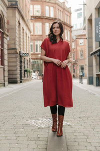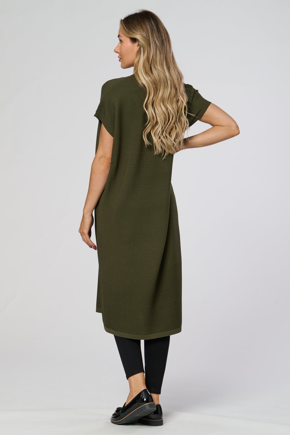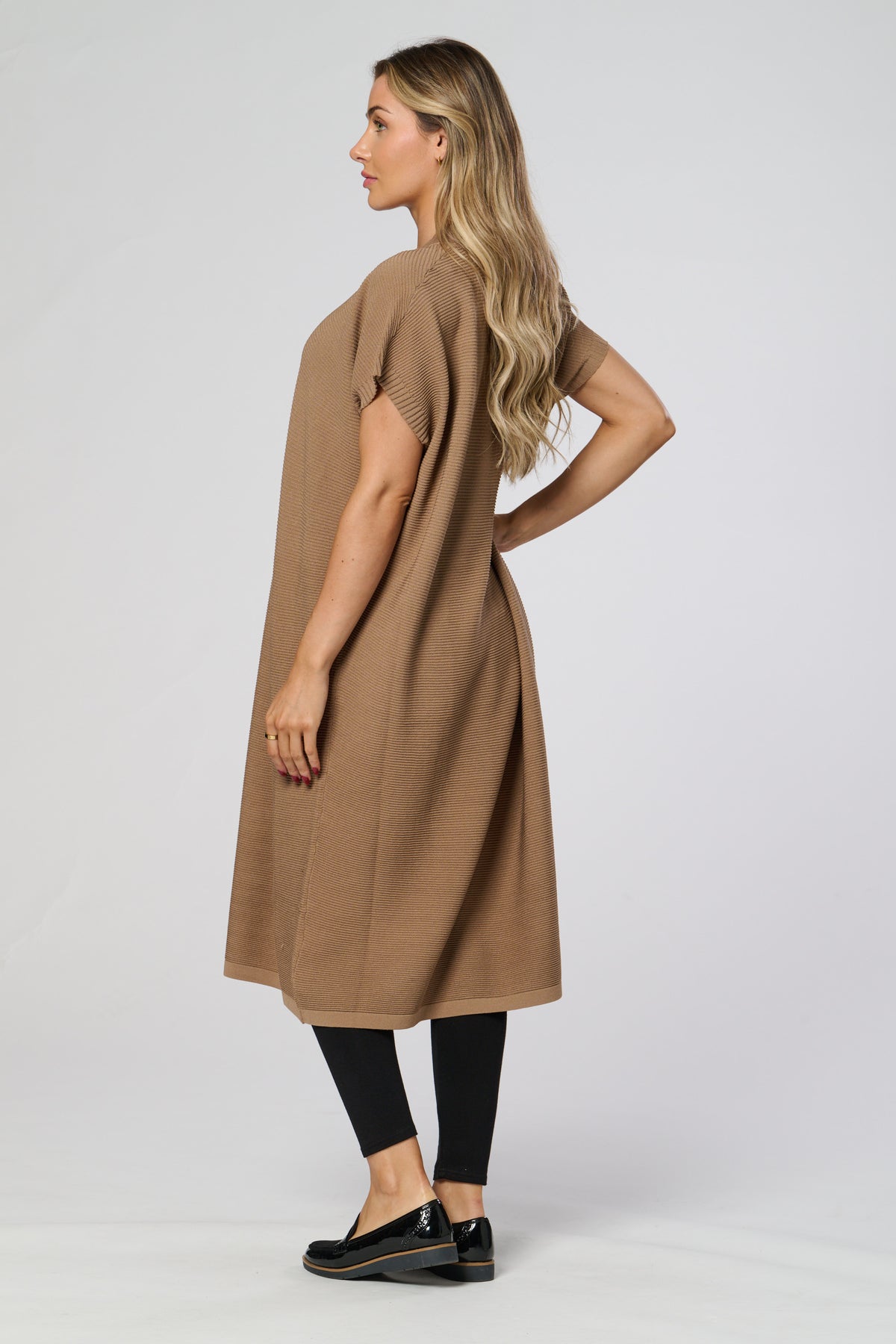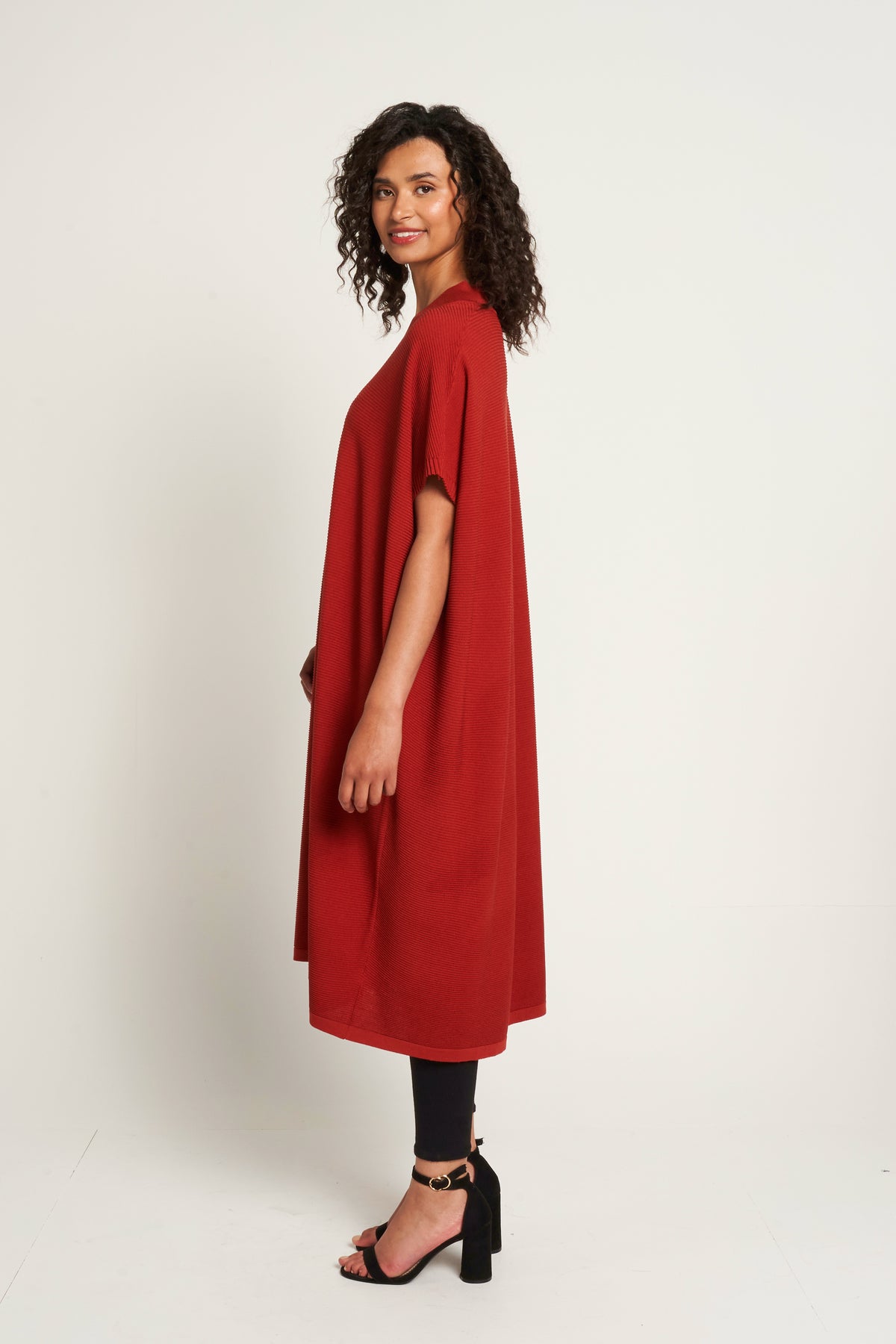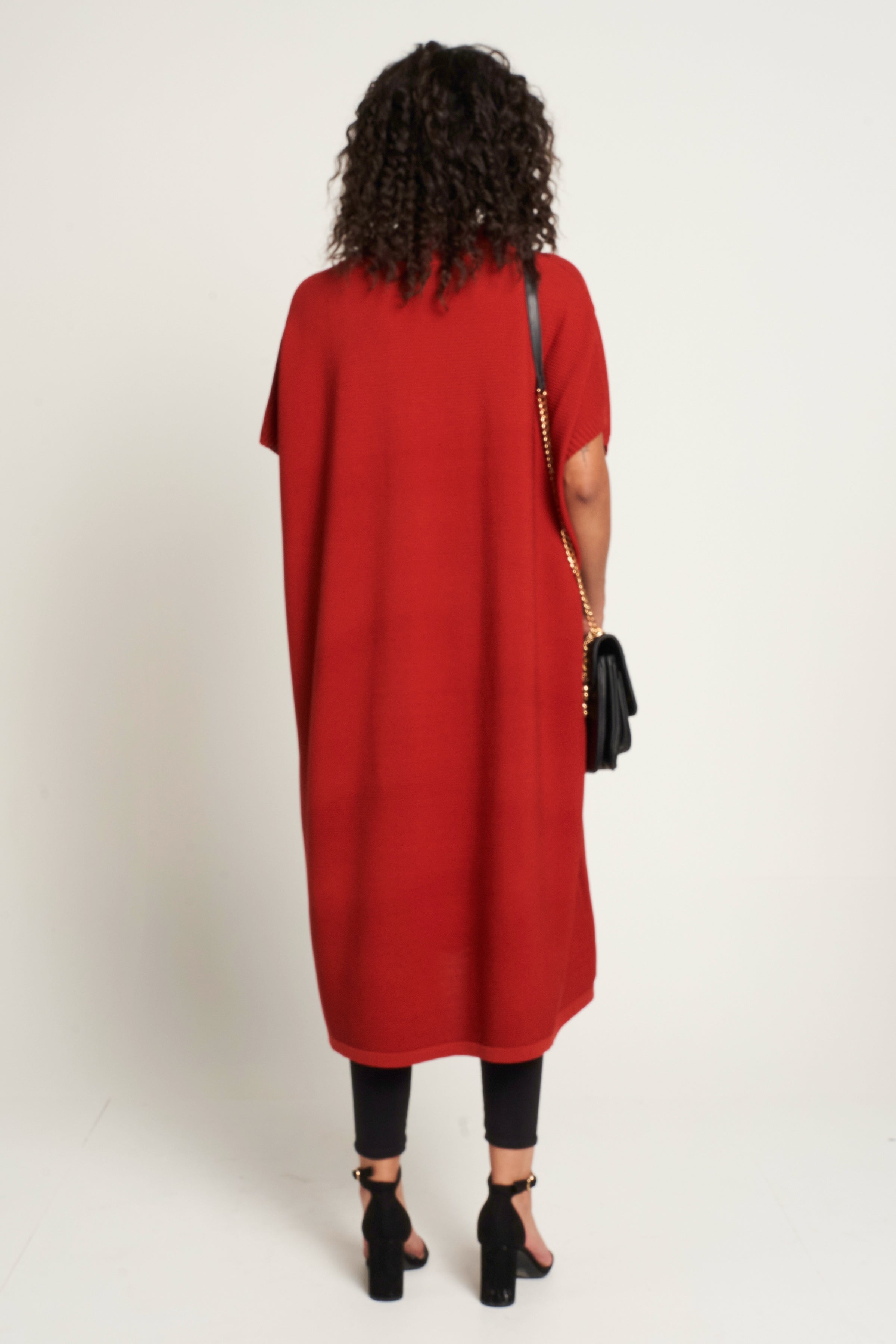 This knitted dress features a V-neck and extended shoulder sleeves for a comfortable yet stylish fit. Midi length and expertly crafted, it offers a timeless and versatile addition to your wardrobe. Made with high-quality materials, this dress is perfect for any occasion.