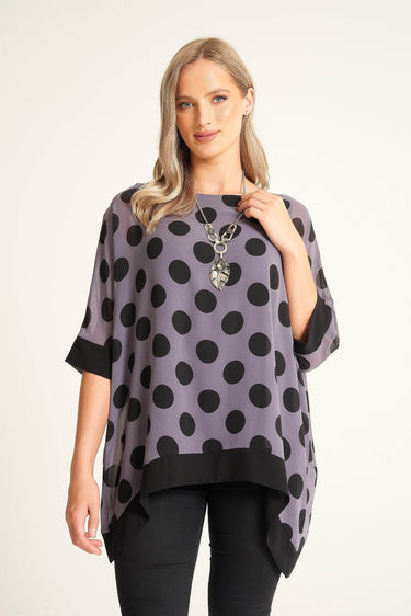 Our cut blouse in a classic polka dot print creates a simple yet chic piece. Its boat neck, side dipped hems, three-quarter sleeves and relaxed cut make it an ideal complement to everything.