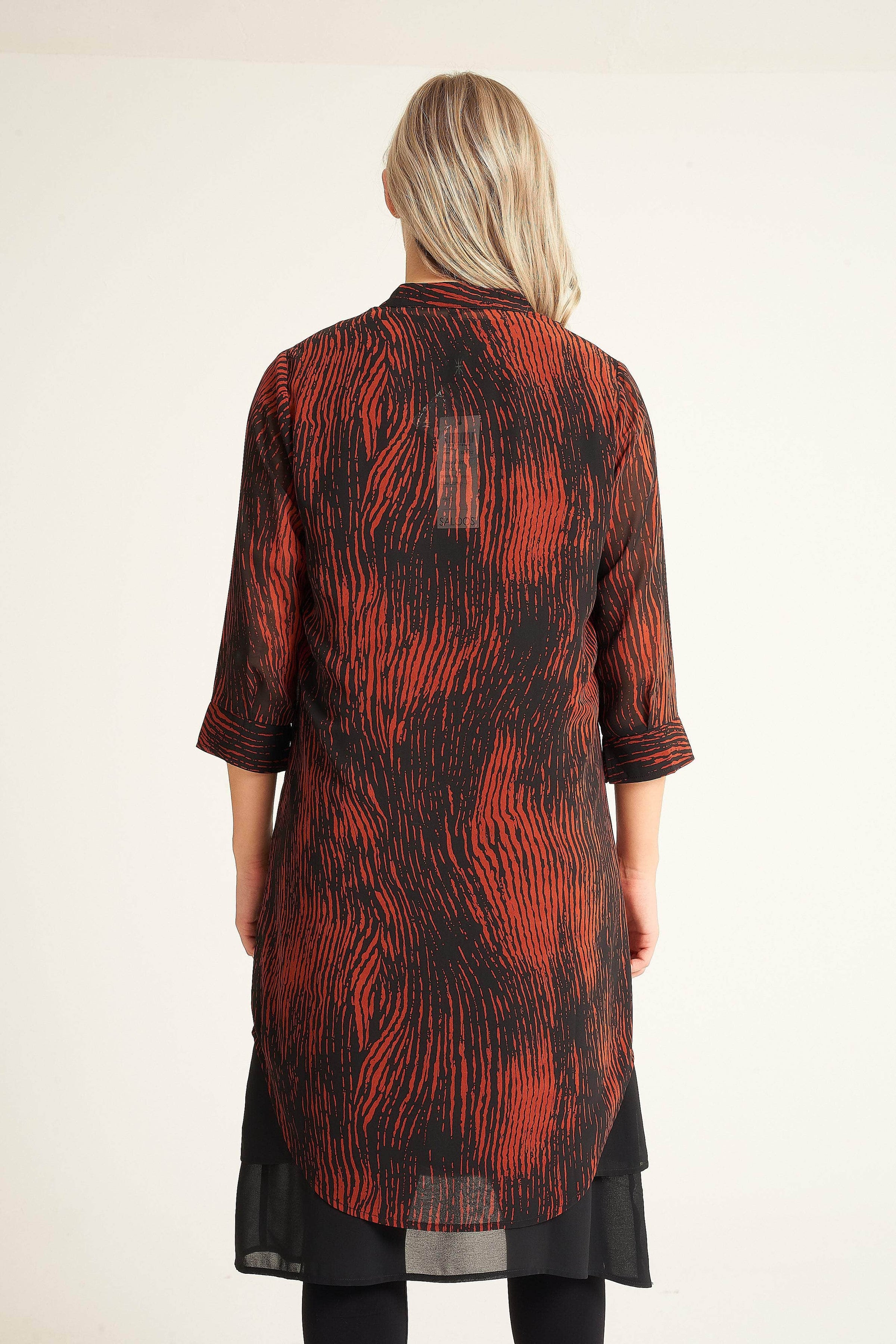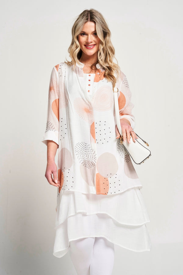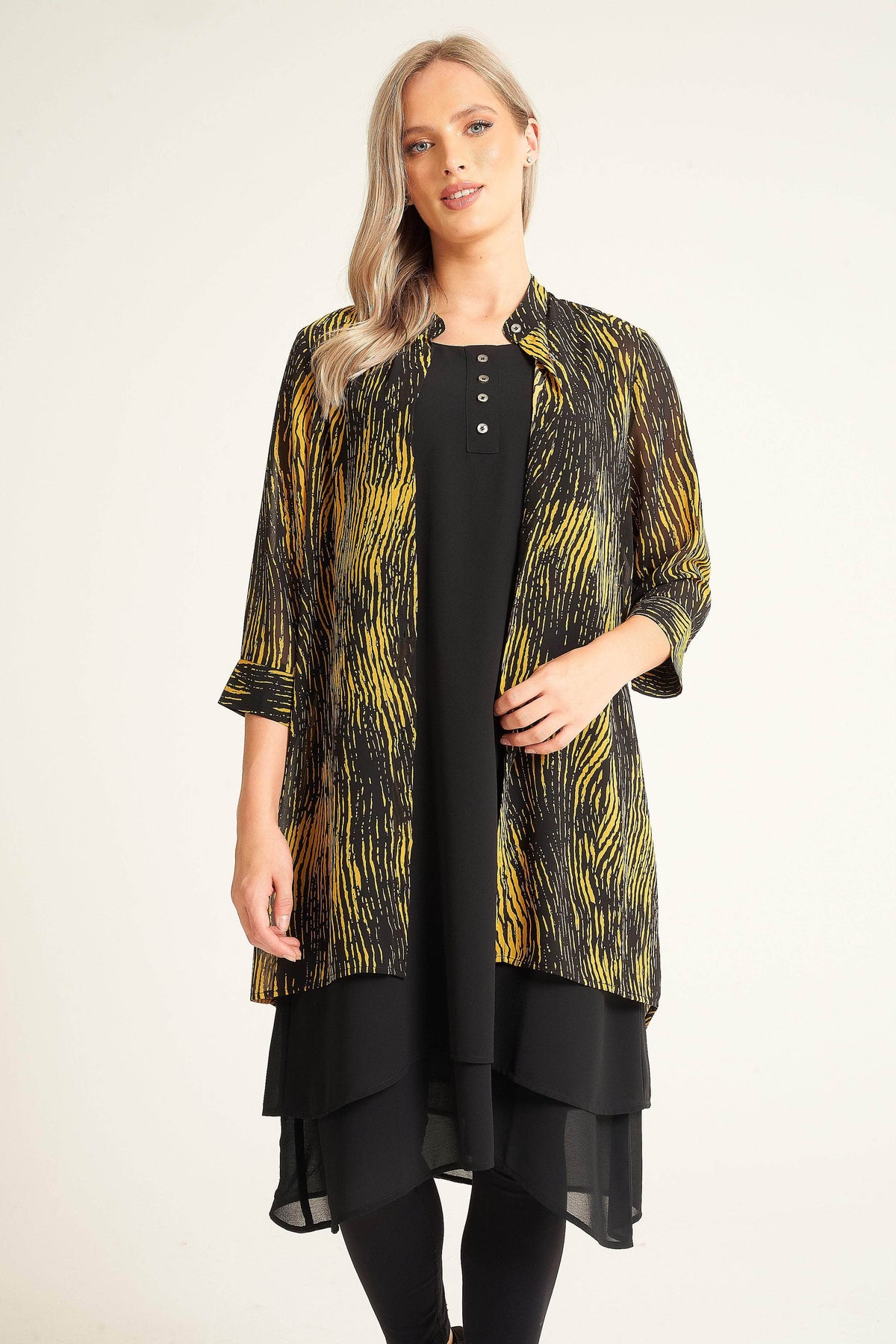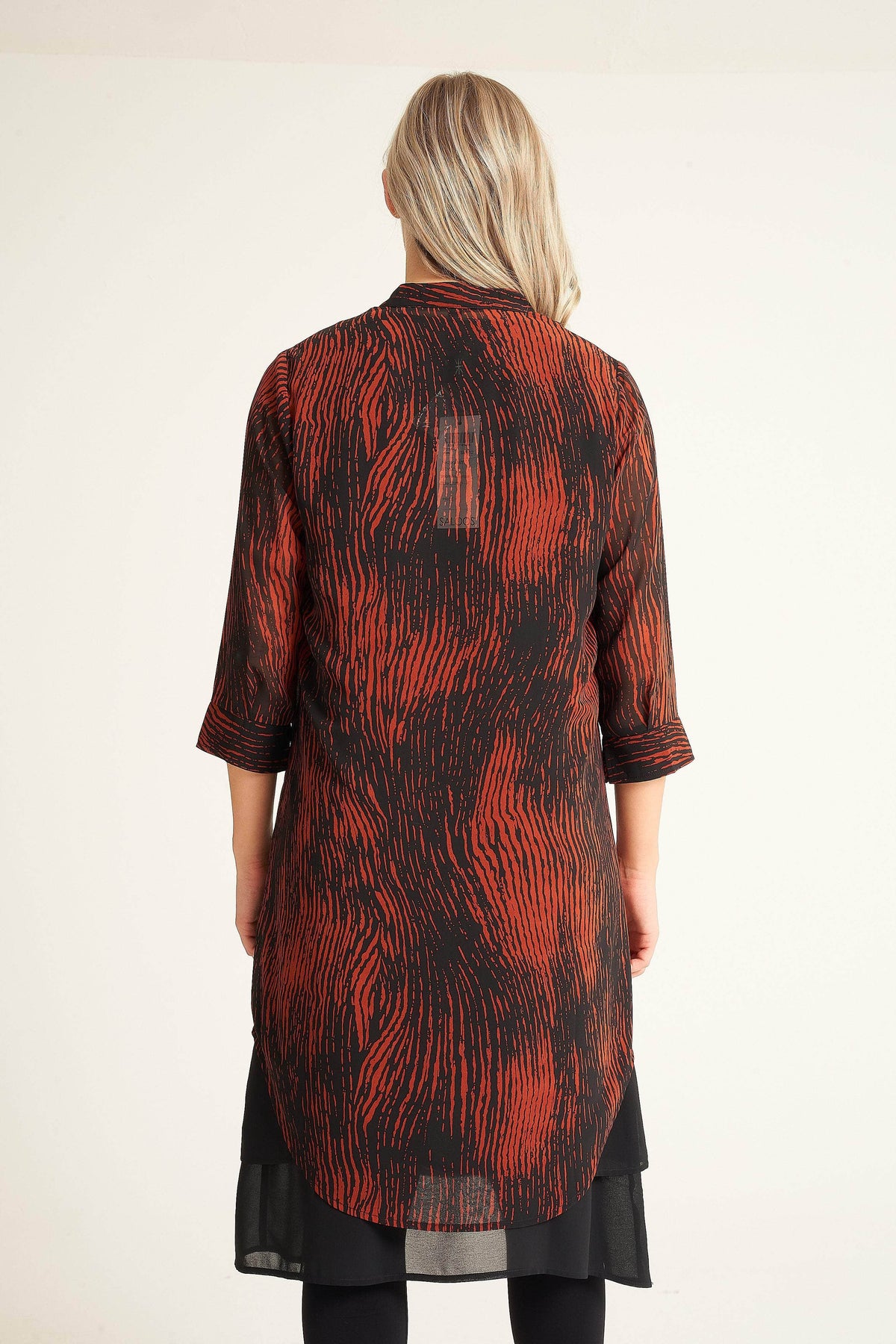 This triple-layer shirt dress presents an elegant combination of style and sophistication with a lightweight printed button through jacket.