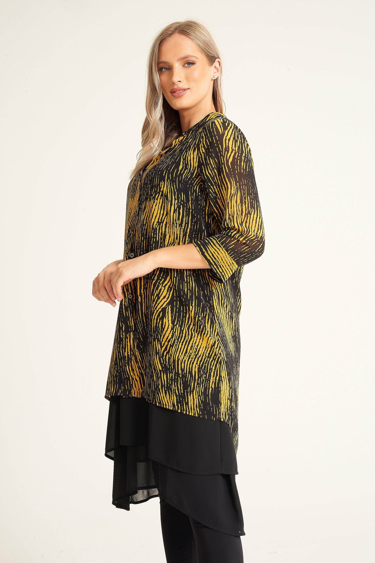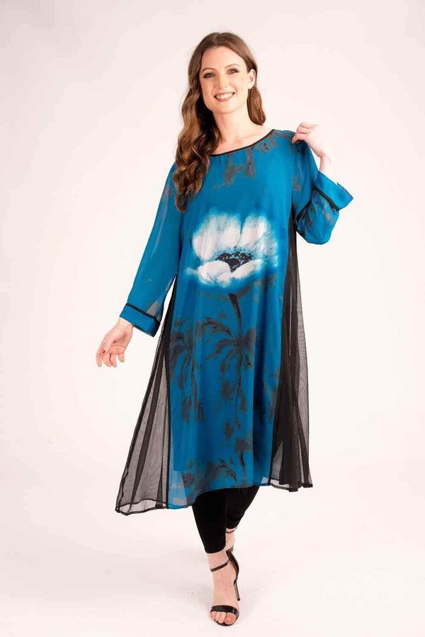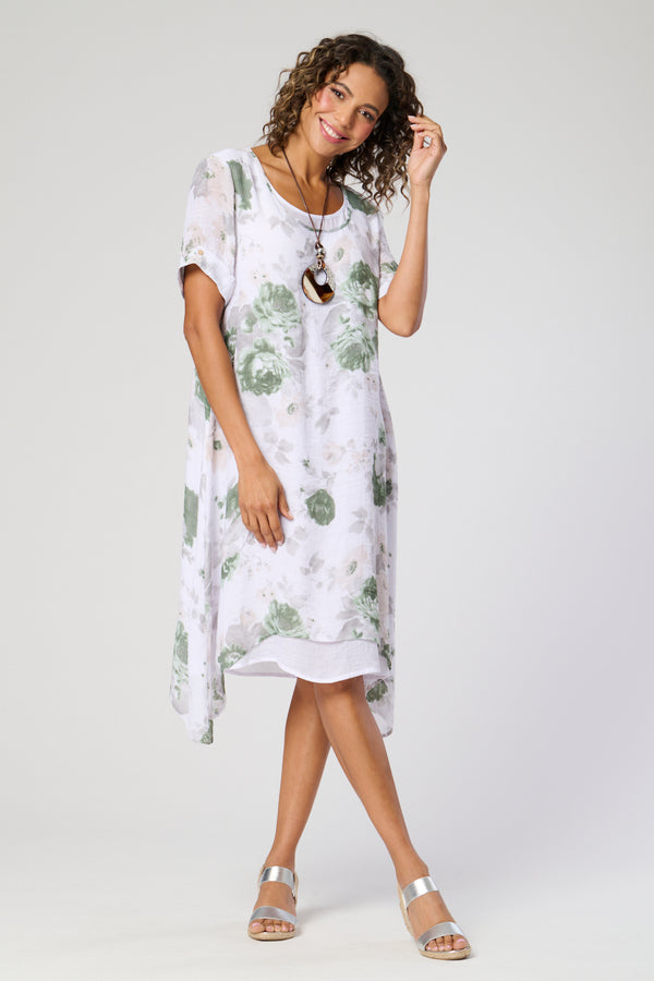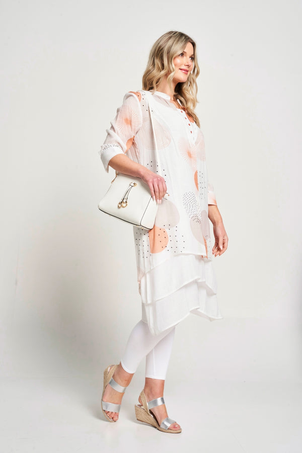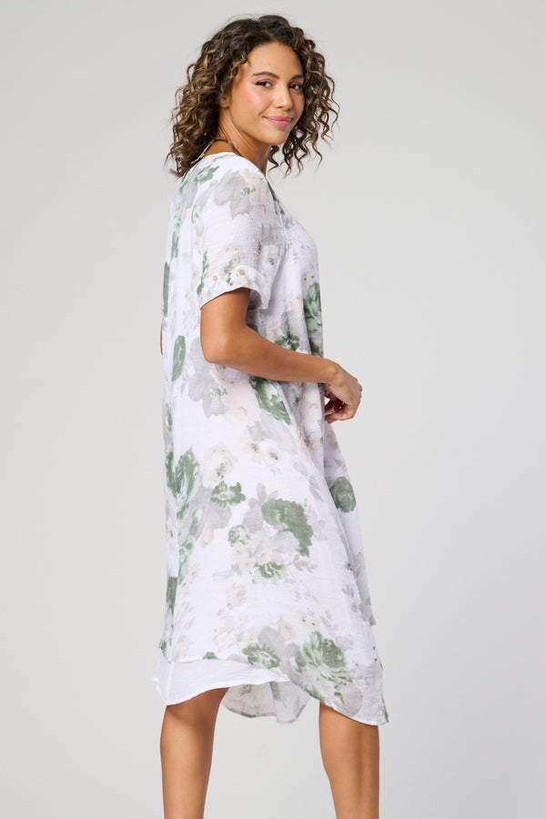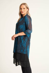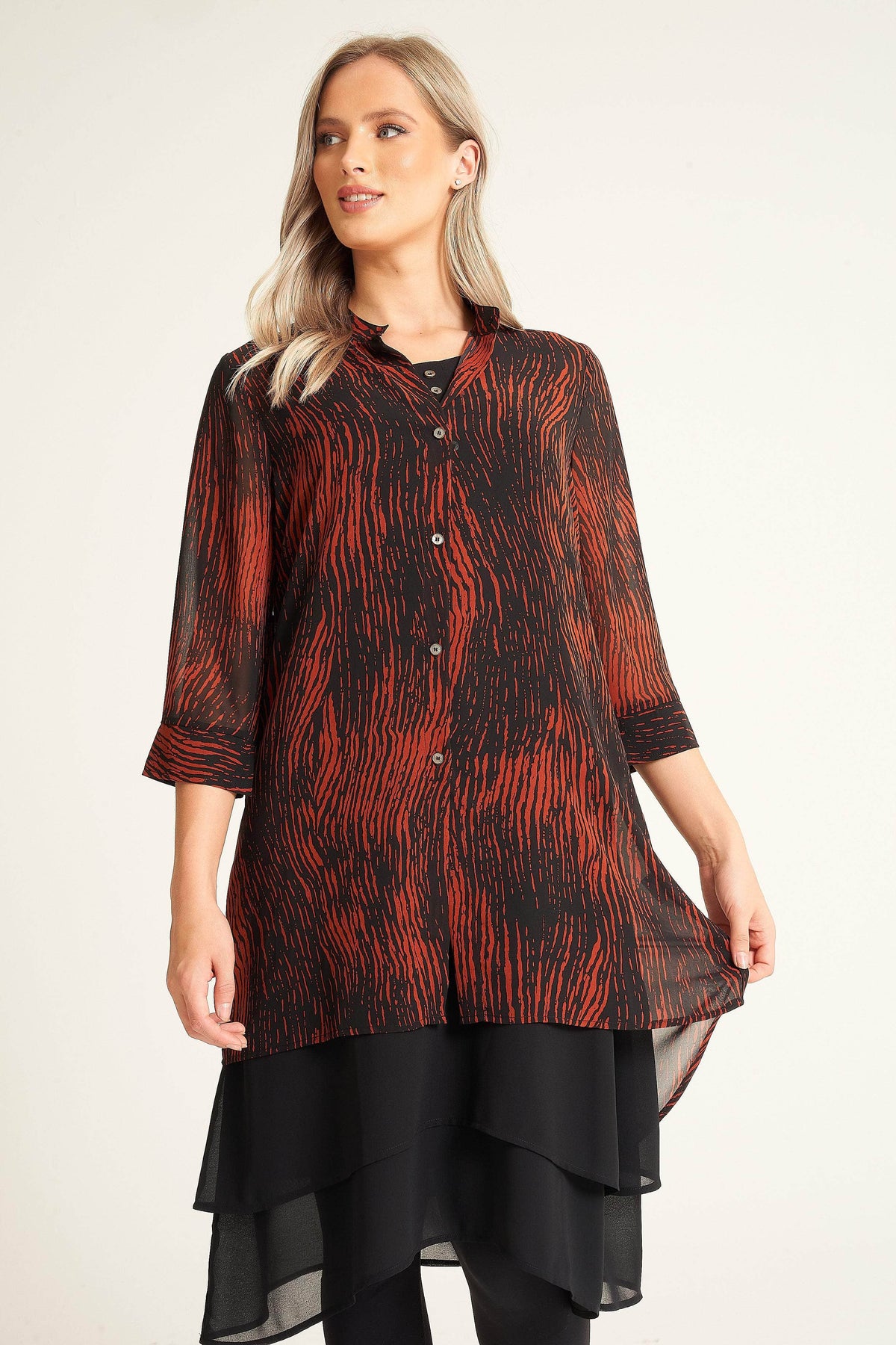 This triple-layer shirt dress presents an elegant combination of style and sophistication with a lightweight printed button through jacket.