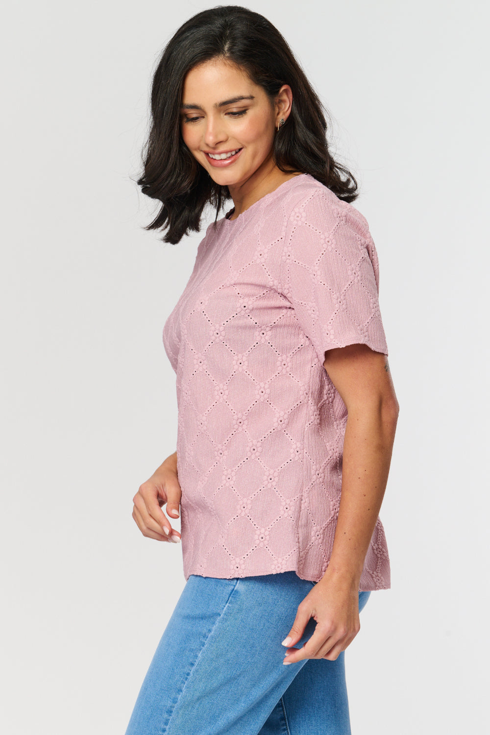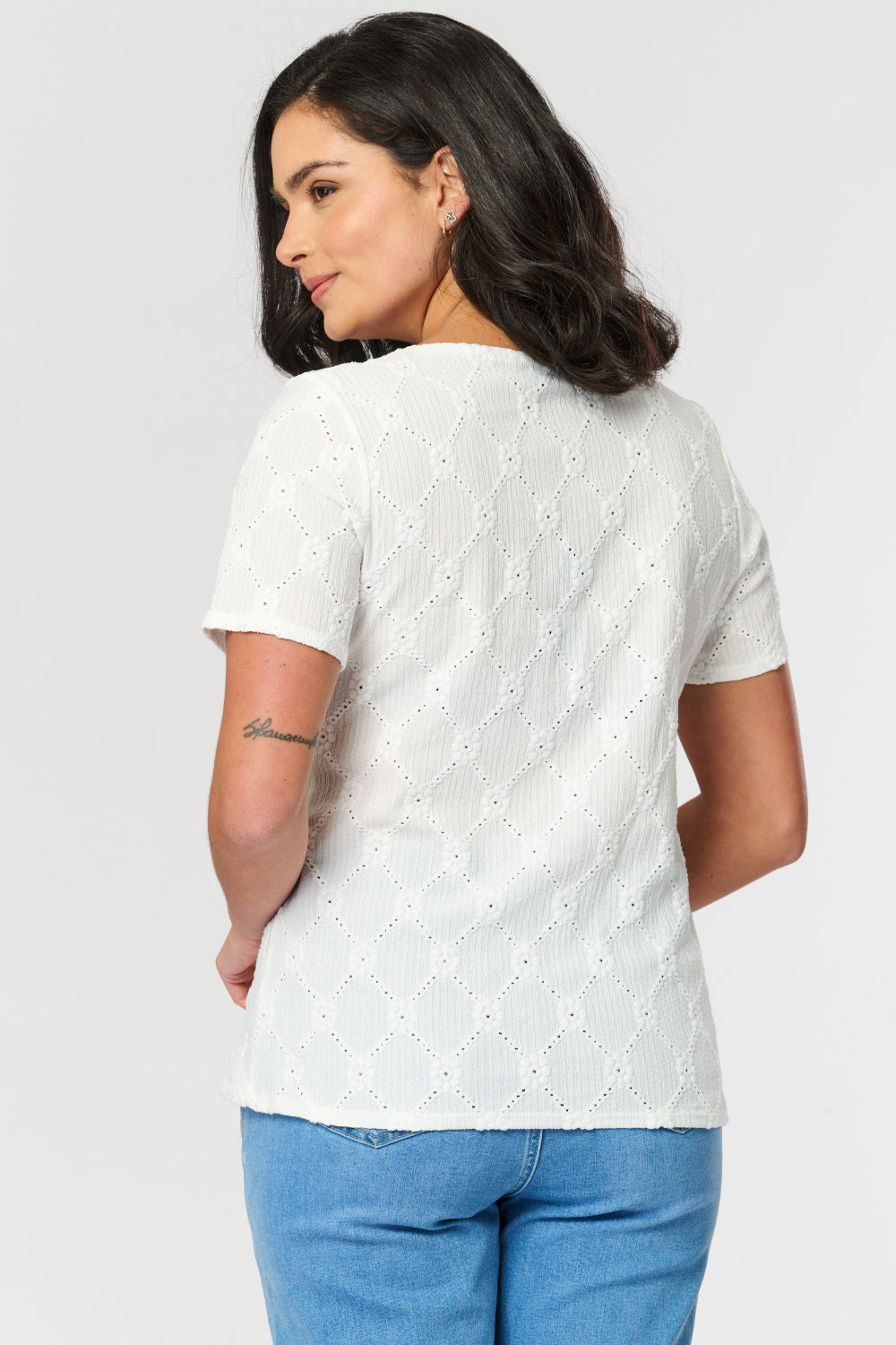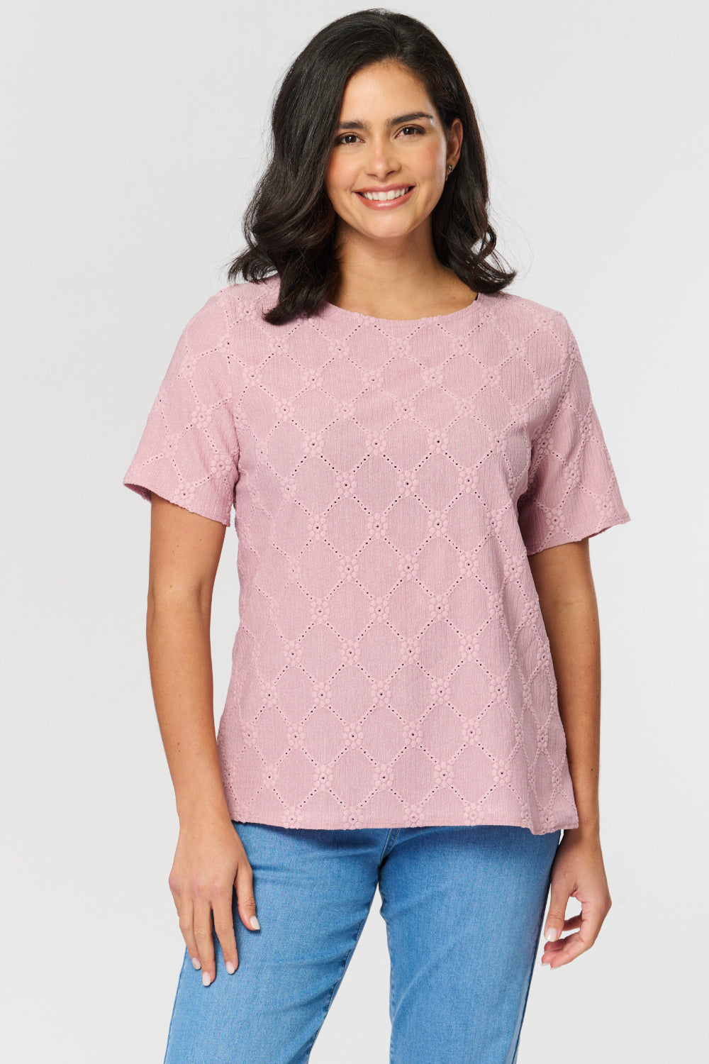 This tee is a breezy and lightweight piece you'll love for summer. This top features a crew neckline and a relaxed, boxy fit that ensures your comfort. Its embroidered fabric adds a lovely feminine detail. Simply throw it on with a skirt, wedges, your favourite handbag, and you're ready to go.