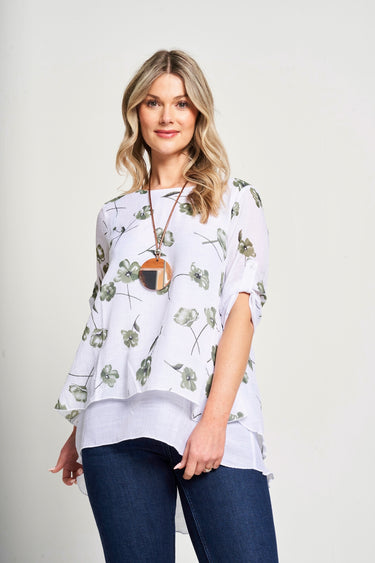 Saloos Linen Look Layered Top with Necklace