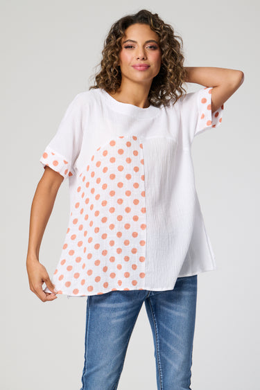 This cut about top is made with cotton for a comfortable and breathable fit. The short sleeves and panelled design create a modern and flattering look. Complete with a stylish spot print, this top is perfect for adding a touch of pattern to your wardrobe.