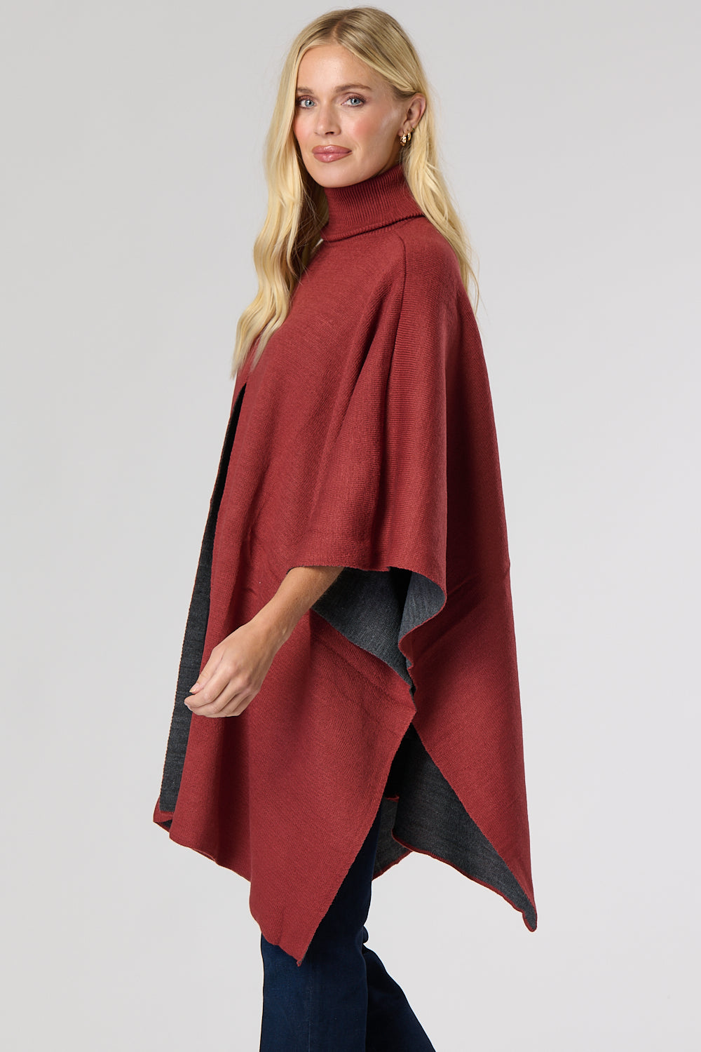 Layer in style this season in the Knitted Split Front Poncho. Crafted from a knitted fabric, this poncho boasts a high rolled neckline, is cut for a relaxed shape and has a large split for added detail.