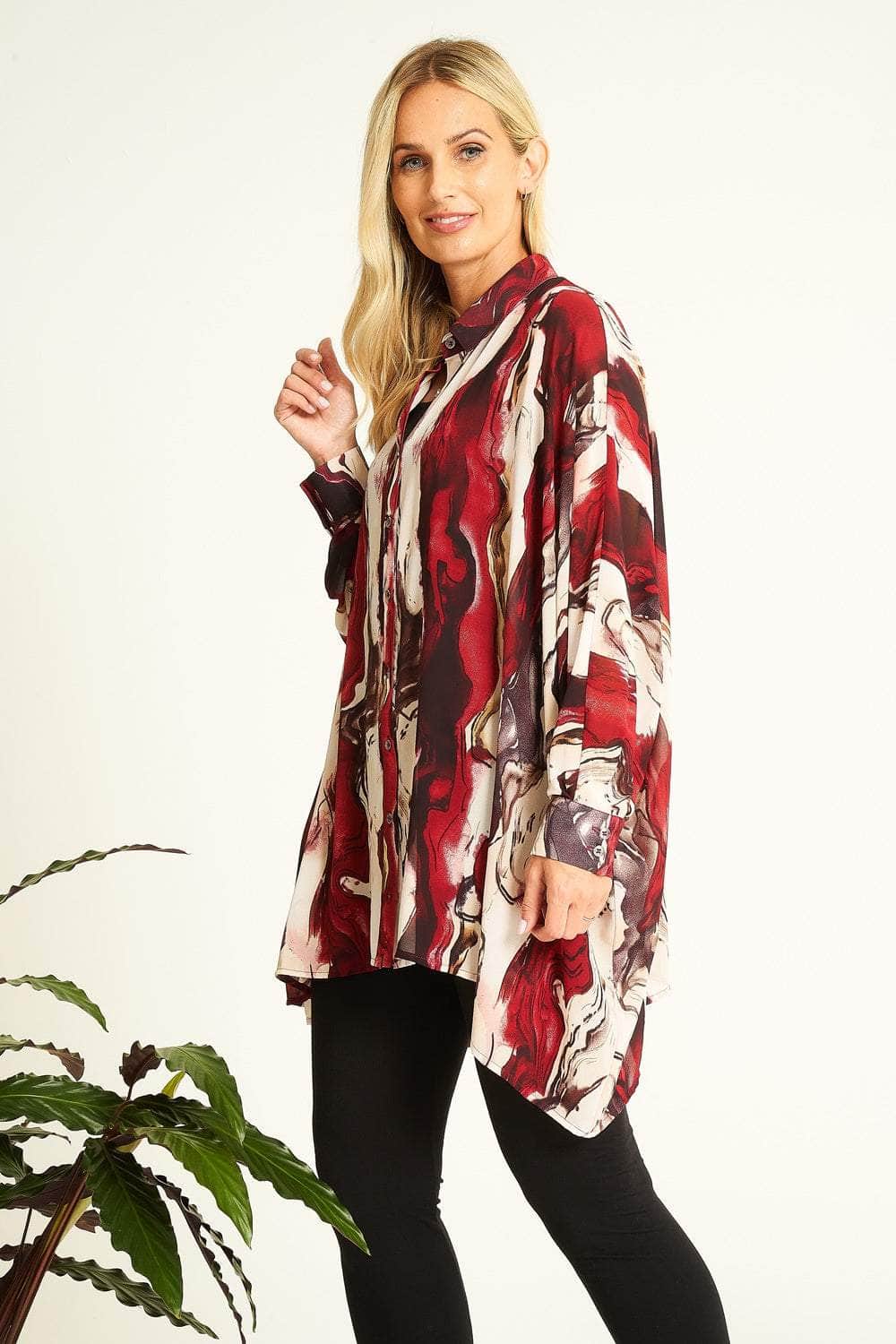 Oversize marble print blouse with hanky dipped hemline and double button cuff. A perfect elegant shirt for any occasion.