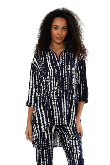 Add effortless style to your everyday wardrobe with this modern tie-dye shirt. Designed in a relaxed, flattering silhouette, this lightweight shirt features a classic collar, a full button-through front, and easy 3/4 length sleeves for year-round wear. The navy and white tie-dye print brings a contemporary edge while remaining timeless and versatile.