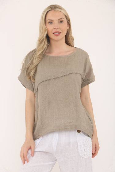 Obsession Linen Short Sleeved Top With Raw Edge Detail