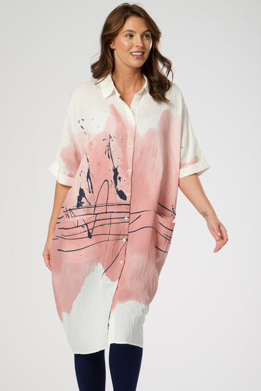 Transform your wardrobe with this oversized printed shirt-dress, boasting an effortlessly chic design. This shirt-dress features a collar neck, button-through fastening, front patch pockets and elbow-length dolman sleeves for a relaxed yet stylish fit. The narrow hemline adds a contemporary touch, making it perfect for both casual outings and more polished occasions. Pair it with leggings for a laid-back vibe.