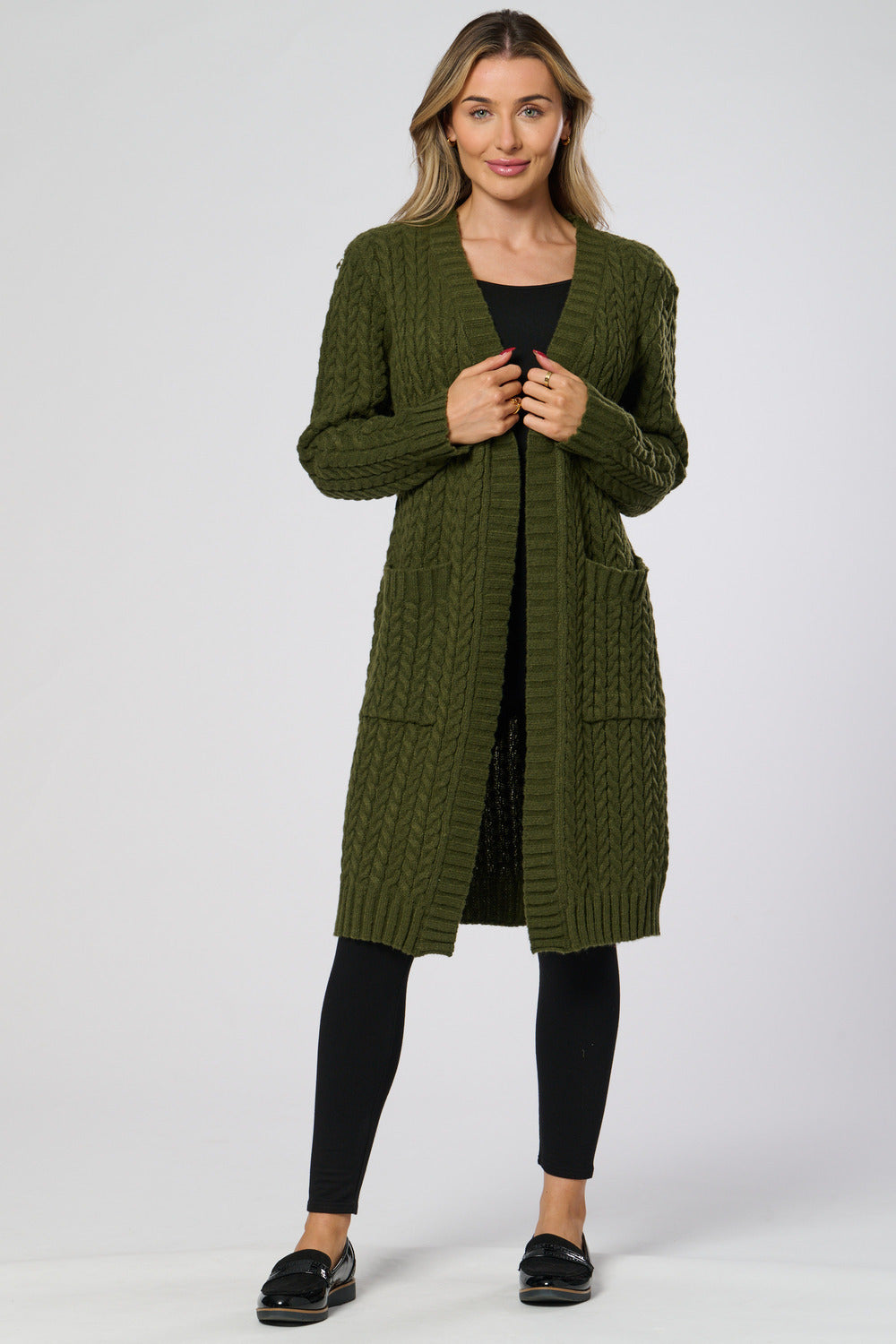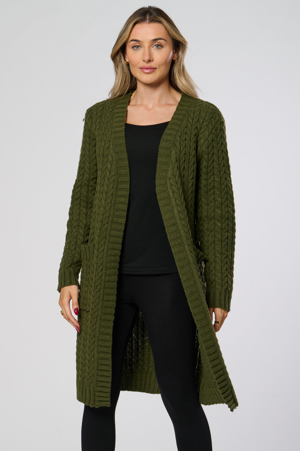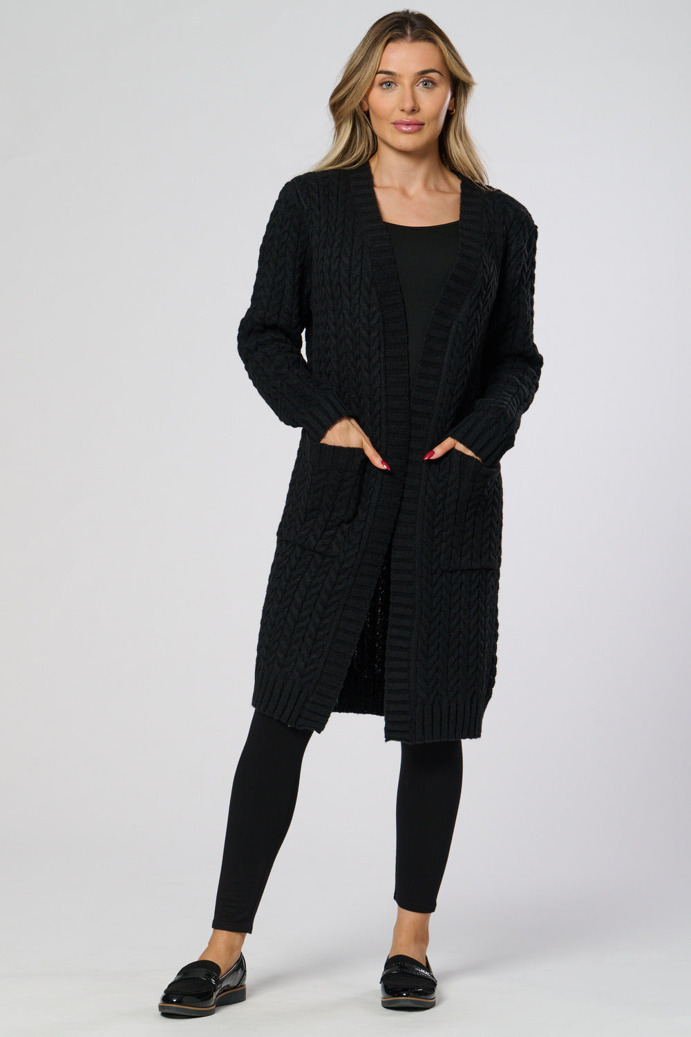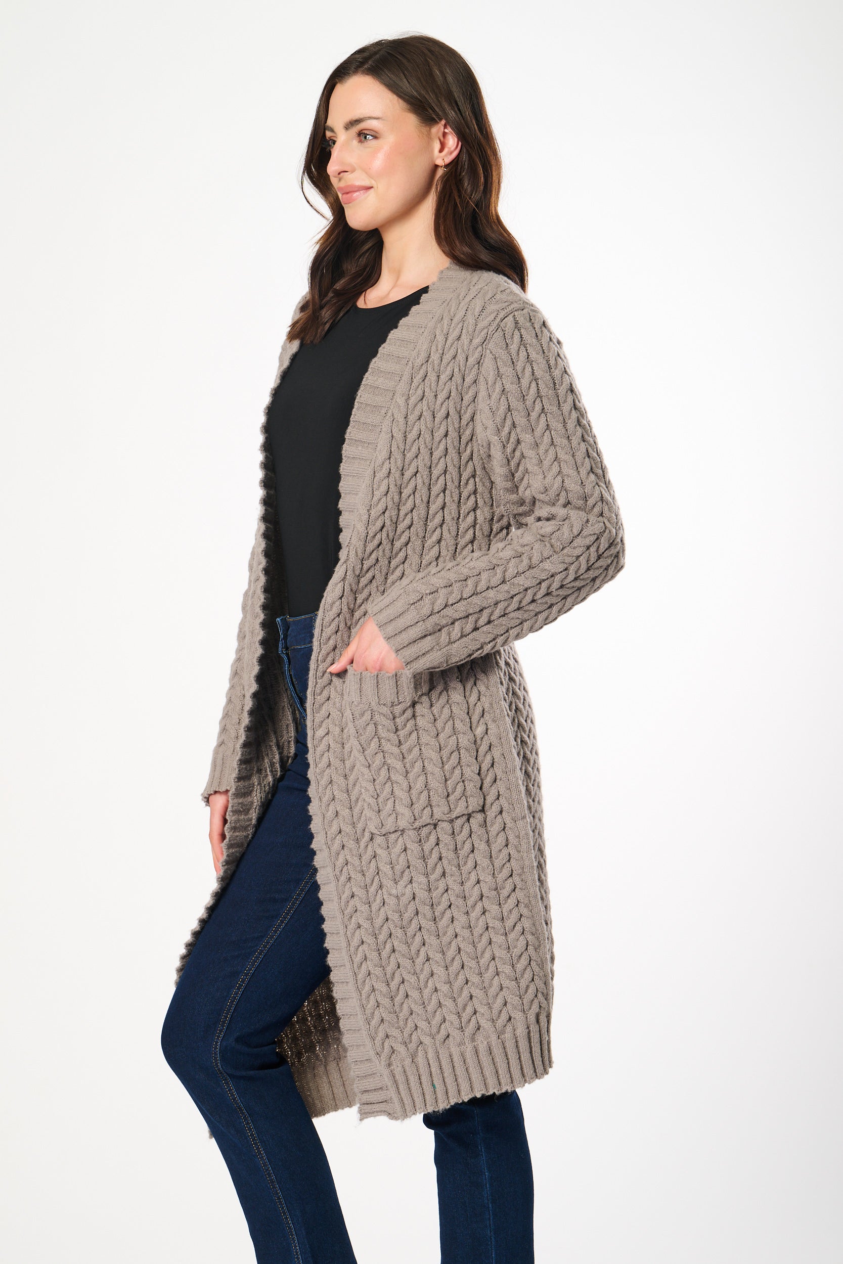 Saloos Women's Long Cable Knit Cardigan with Pockets