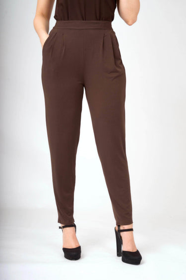 A super sophisticated elasticated tapered trouser with side pockets made from a sumptuously soft, smooth stretch fabric.
