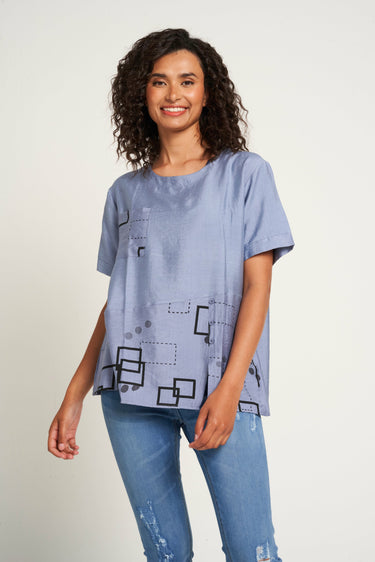 Expertly crafted for both style and comfort, this top boasts an oversized panelled print for a unique look. The button split and breast pocket add practicality to this fashionable piece, while the short sleeves make it perfect for any season. Elevate your wardrobe with this must-have top.