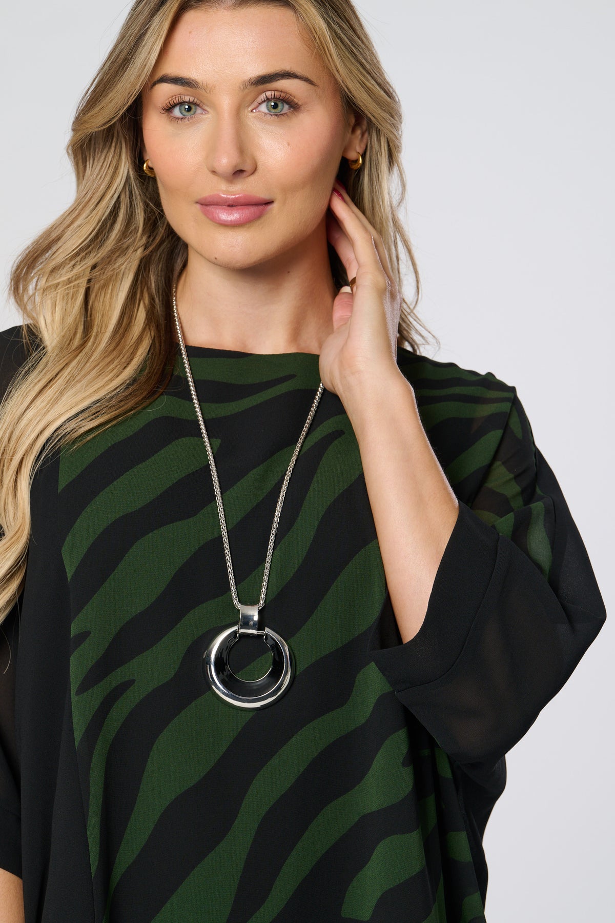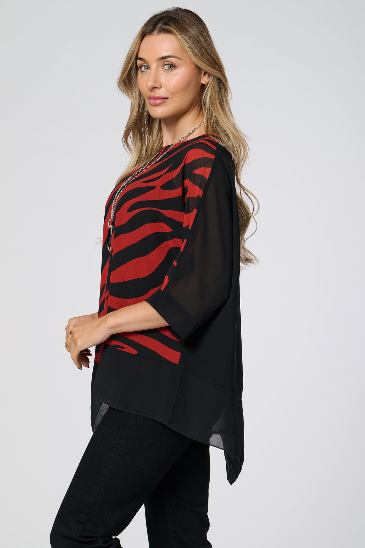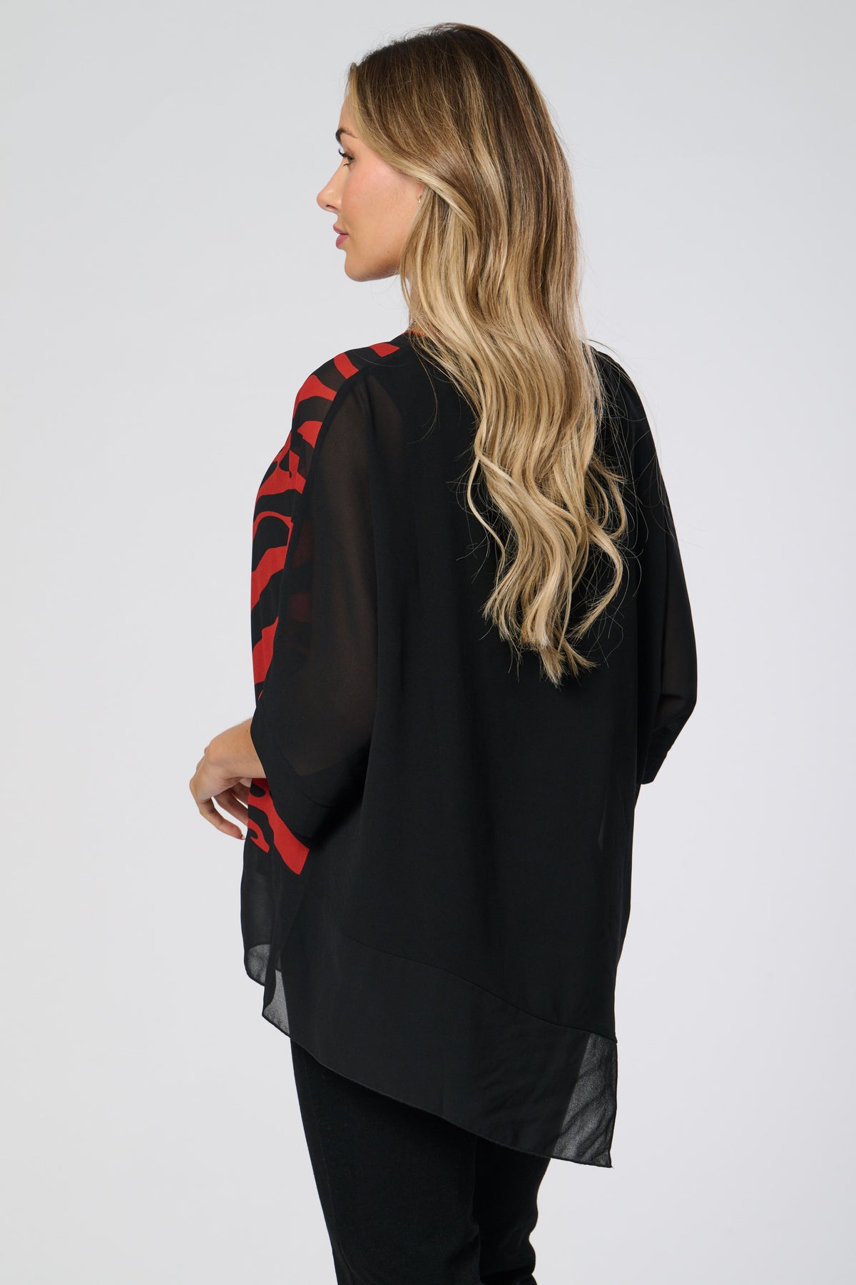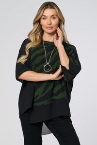 Designed for comfort and style, this top features a unique batwing shape, elbow length sleeves, and a round neck. The double layer construction ensures a professional, polished look. Stay cool and confident all day long in this print/plain top.