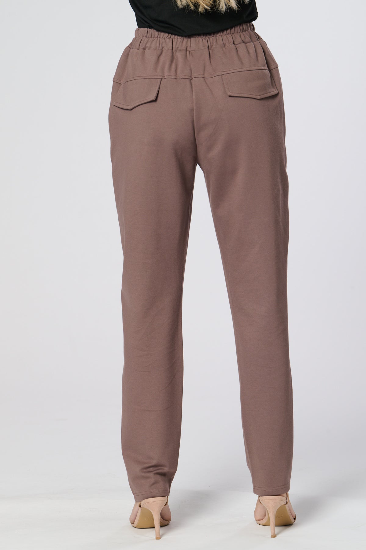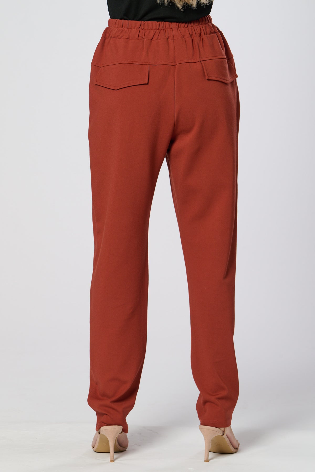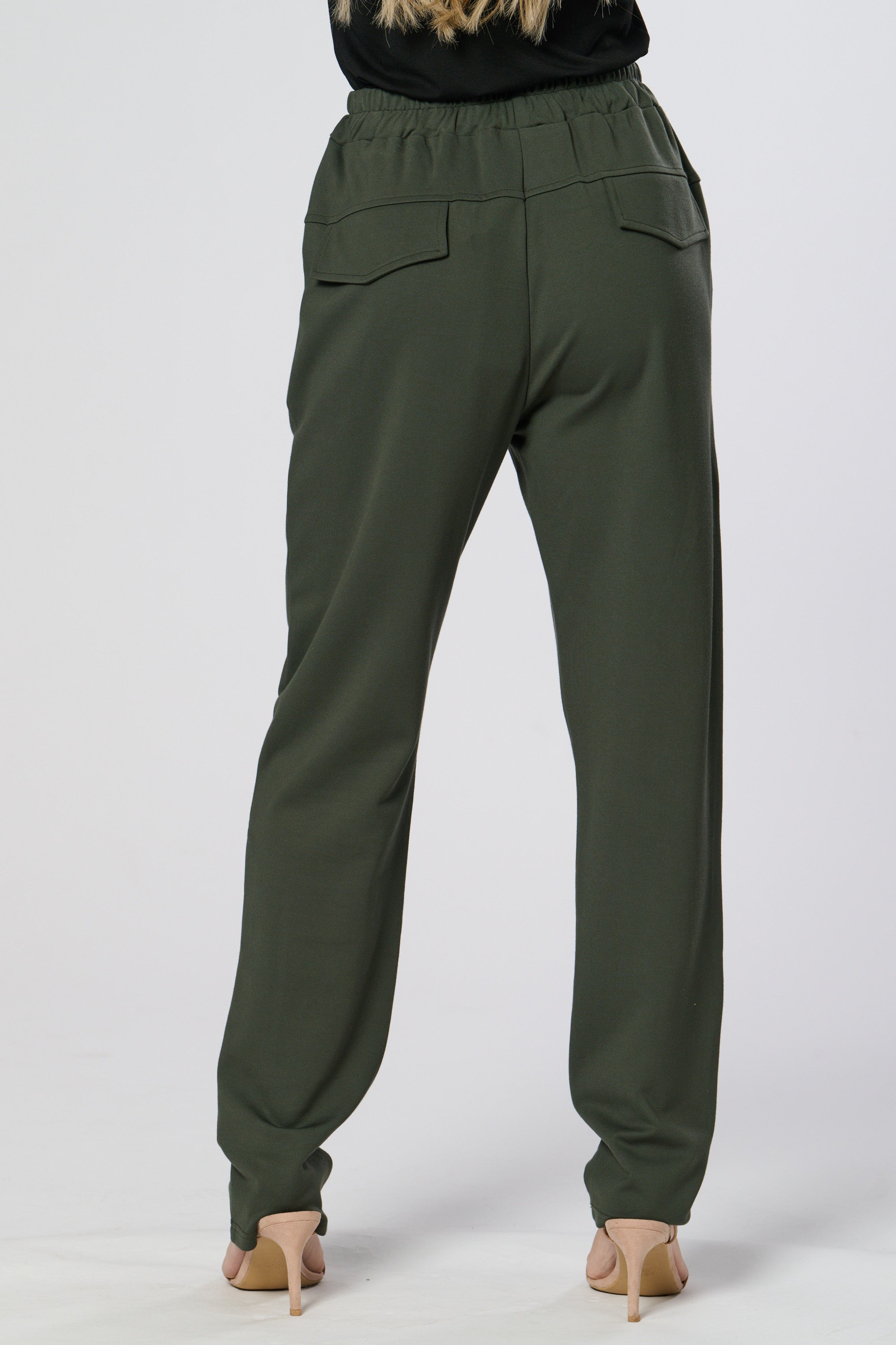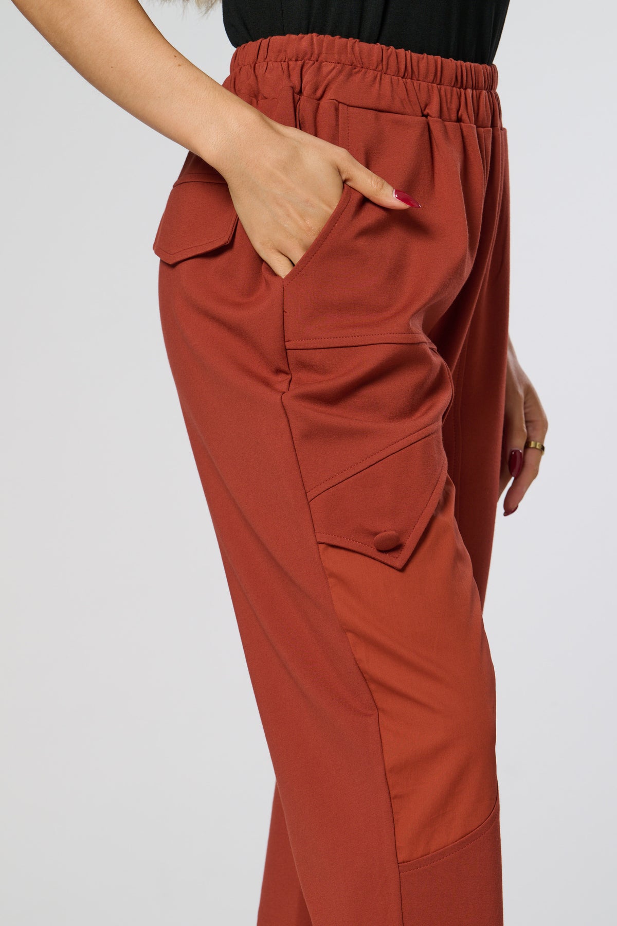 These sleek black trousers combine comfort and style with a relaxed, tapered fit and elasticated waistband. The standout contrast side panel adds a modern, utilitarian touch, while subtle waist pleats create a flattering silhouette. Perfect for both casual and refined looks.