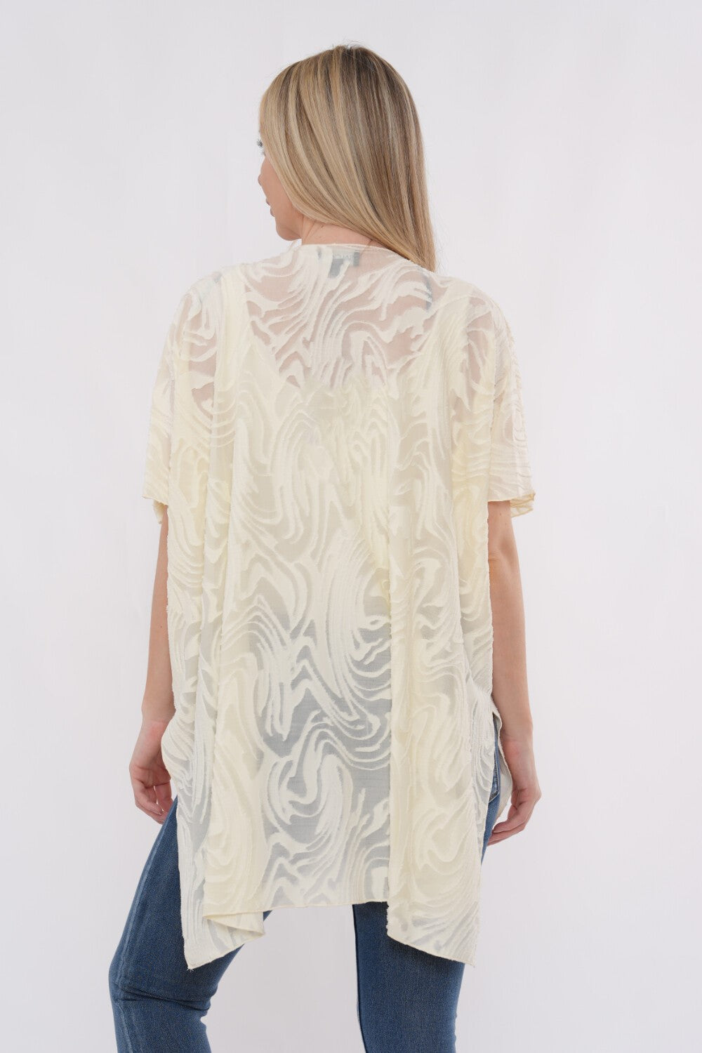 The relaxed, flowy silhouette drapes beautifully over the body, while the short sleeves and breathable fabric make it perfect for year-round wear. Easy to style over tanks, camisoles, or dresses, this jacket transitions seamlessly from casual daytime looks to elevated evening outfits.