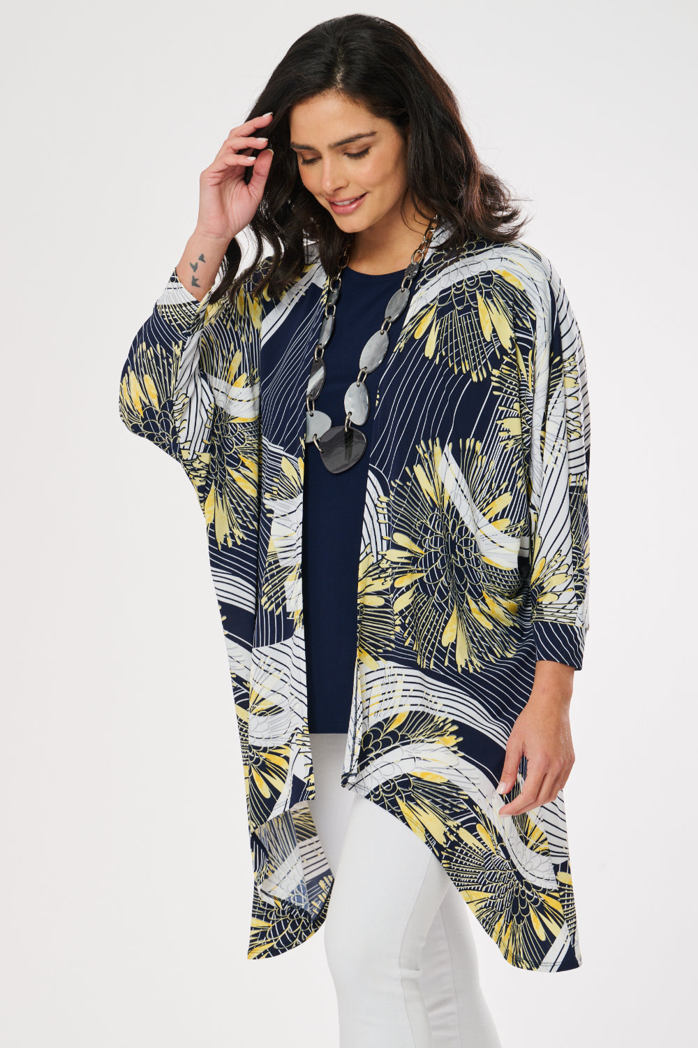 Saloos Print Cardigan & Plain Top Set with Necklace