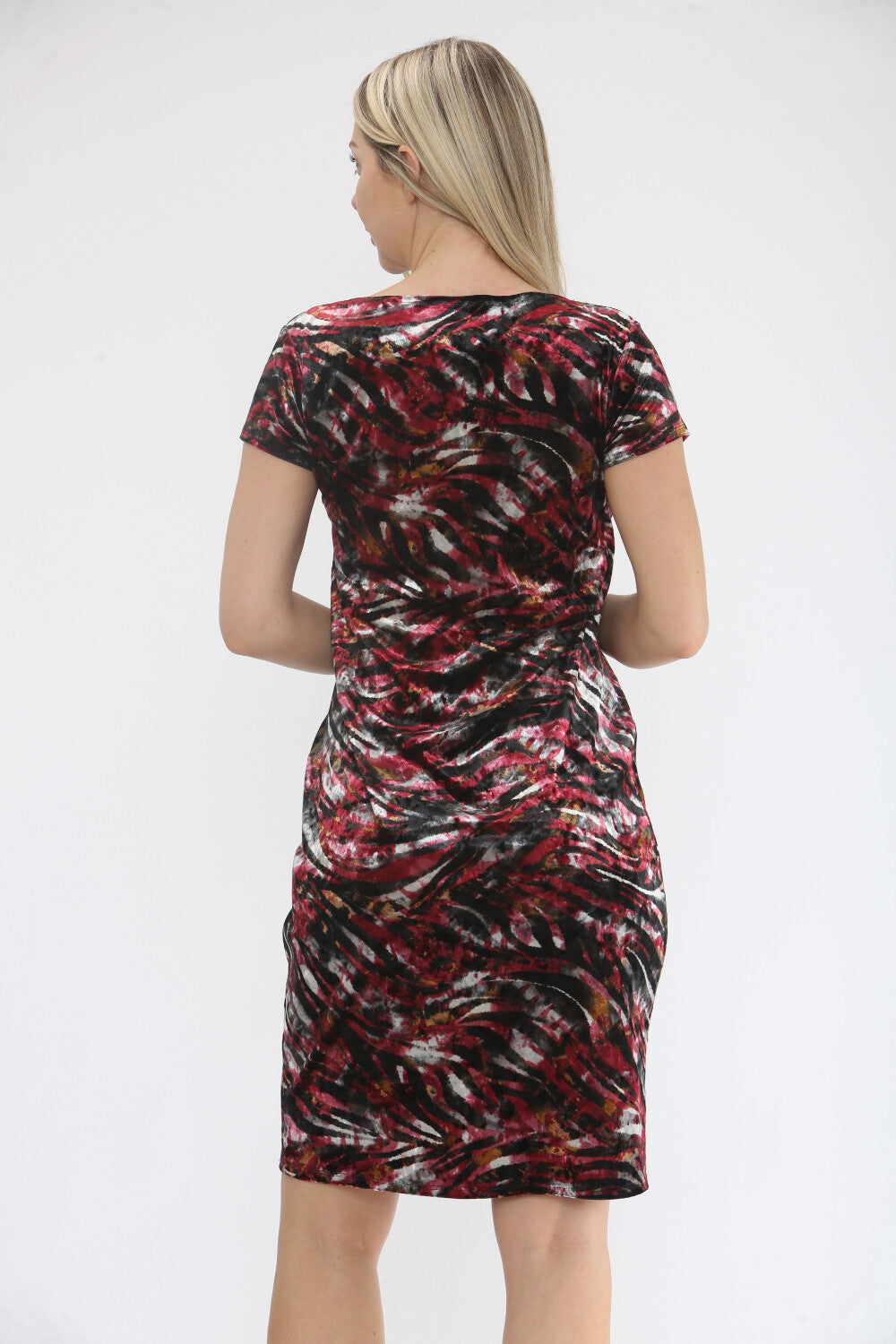 Featuring a flattering cowl neckline and short sleeves, it’s the perfect choice for Christmas parties, evening events, or winter celebrations. The bold print and luxurious fabric give it a sophisticated edge that stands out beautifully.