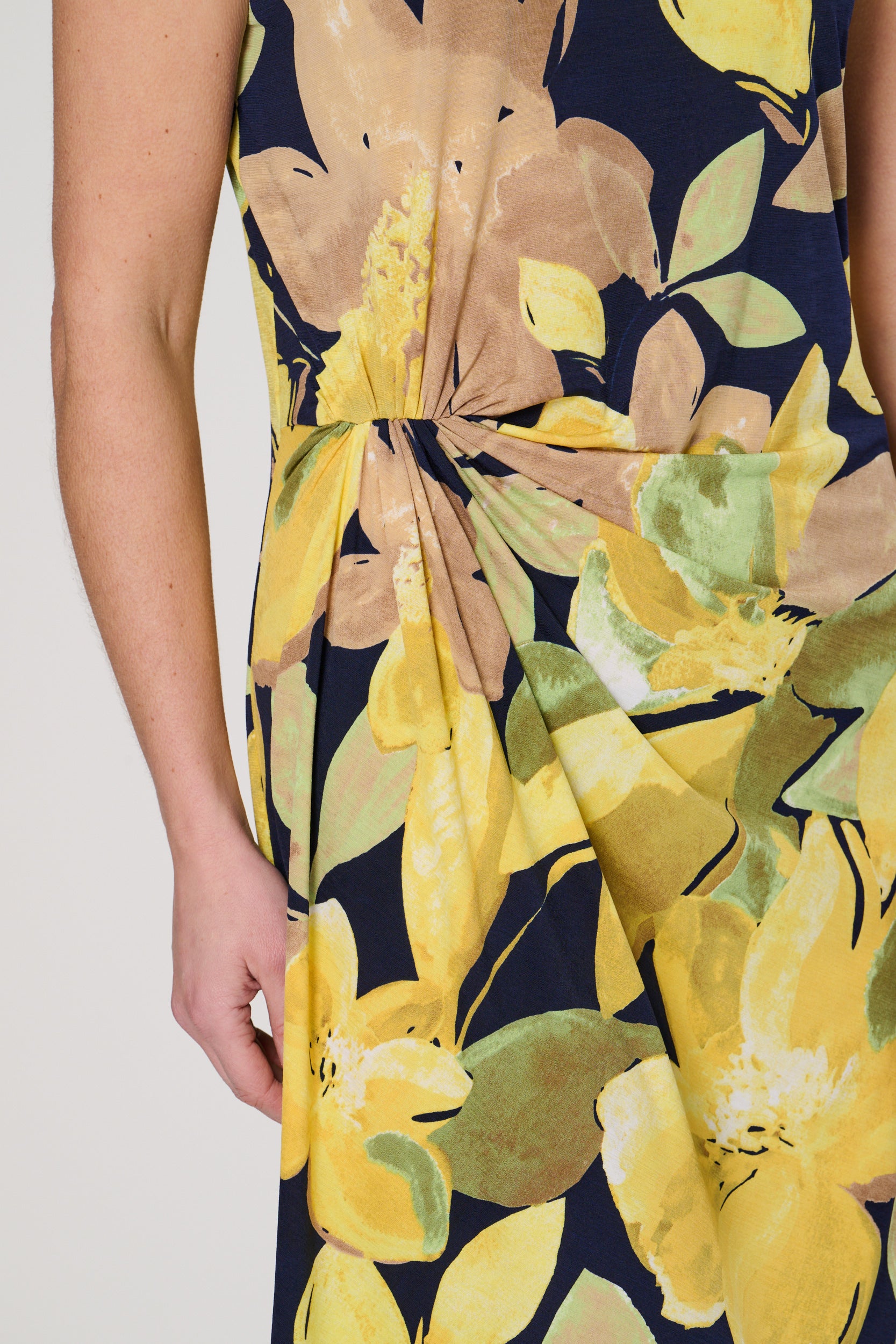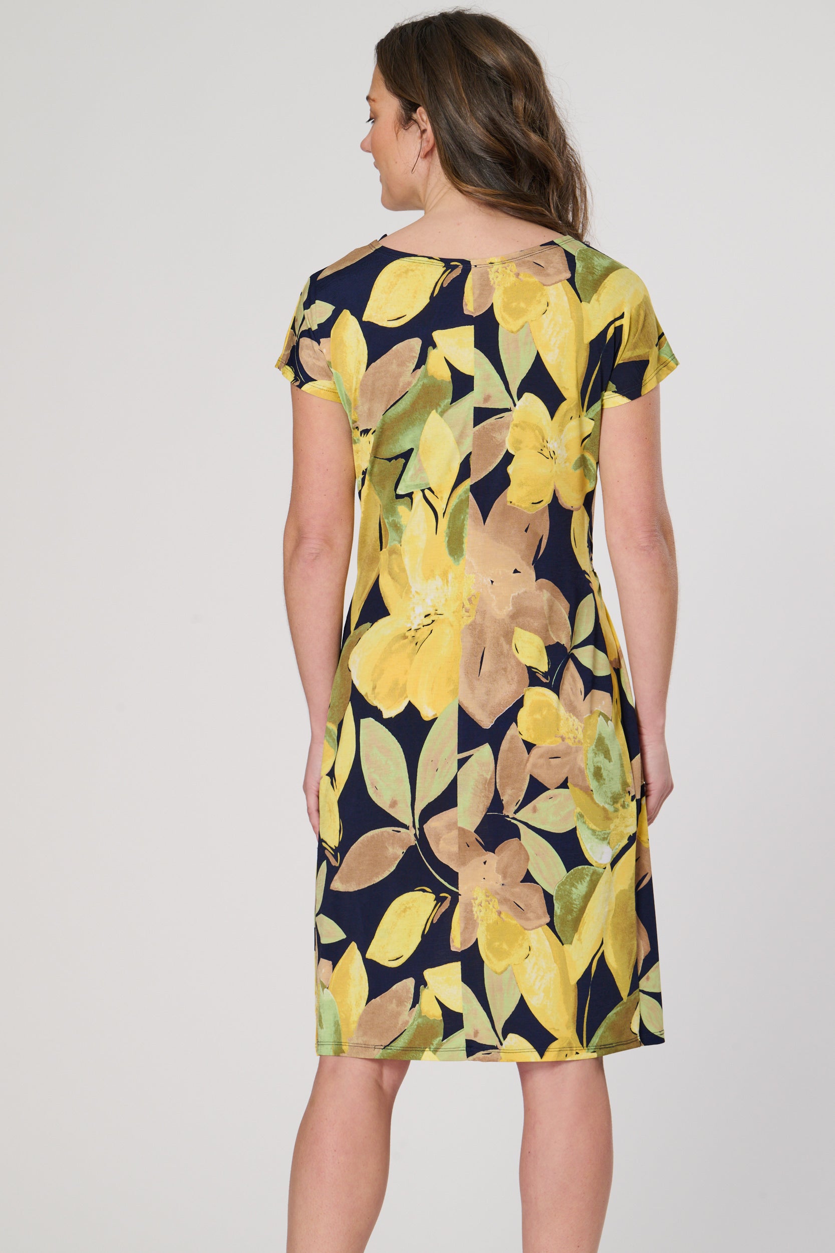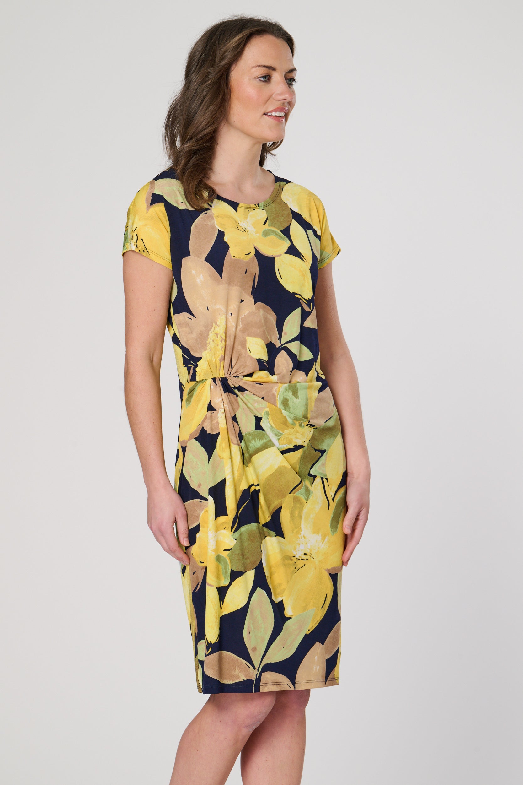 This sophisticated shift-dress boasts flattering ruched detail and elegant bow ties at the waist. Extended shoulder sleeves and a side slit add convenience and comfort. With its luxurious smooth texture and stretchy fabric, it's both fashionable and functional.