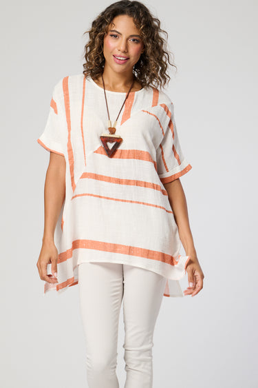 Expertly tailored with a diagonal seam and panelled design, this top is a must-have for your wardrobe. The extended shoulder short sleeves provide comfort and the stripy print adds a touch of style. Made of lightweight cotton, it comes with a matching necklace* for effortless accessorizing.