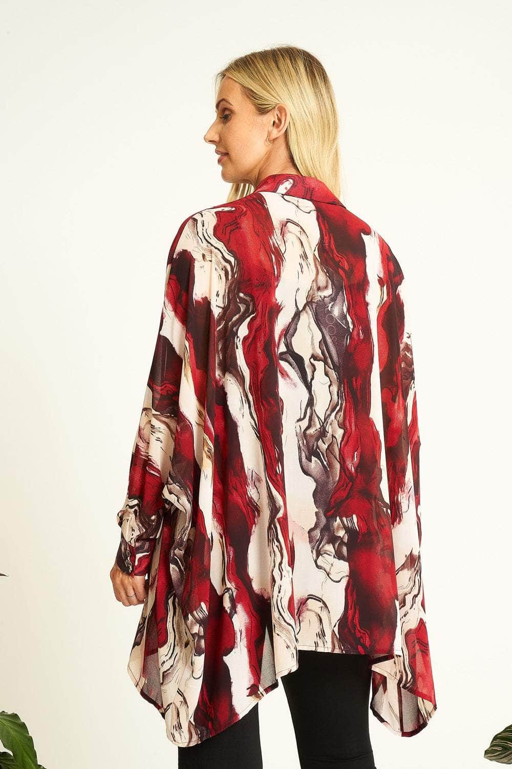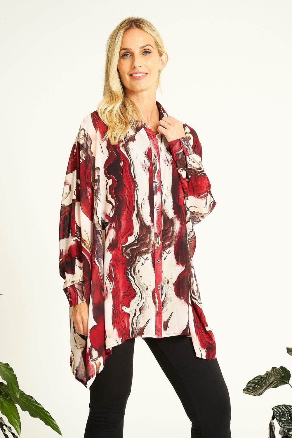Oversize marble print blouse with hanky dipped hemline and double button cuff. A perfect elegant shirt for any occasion.