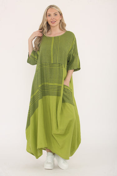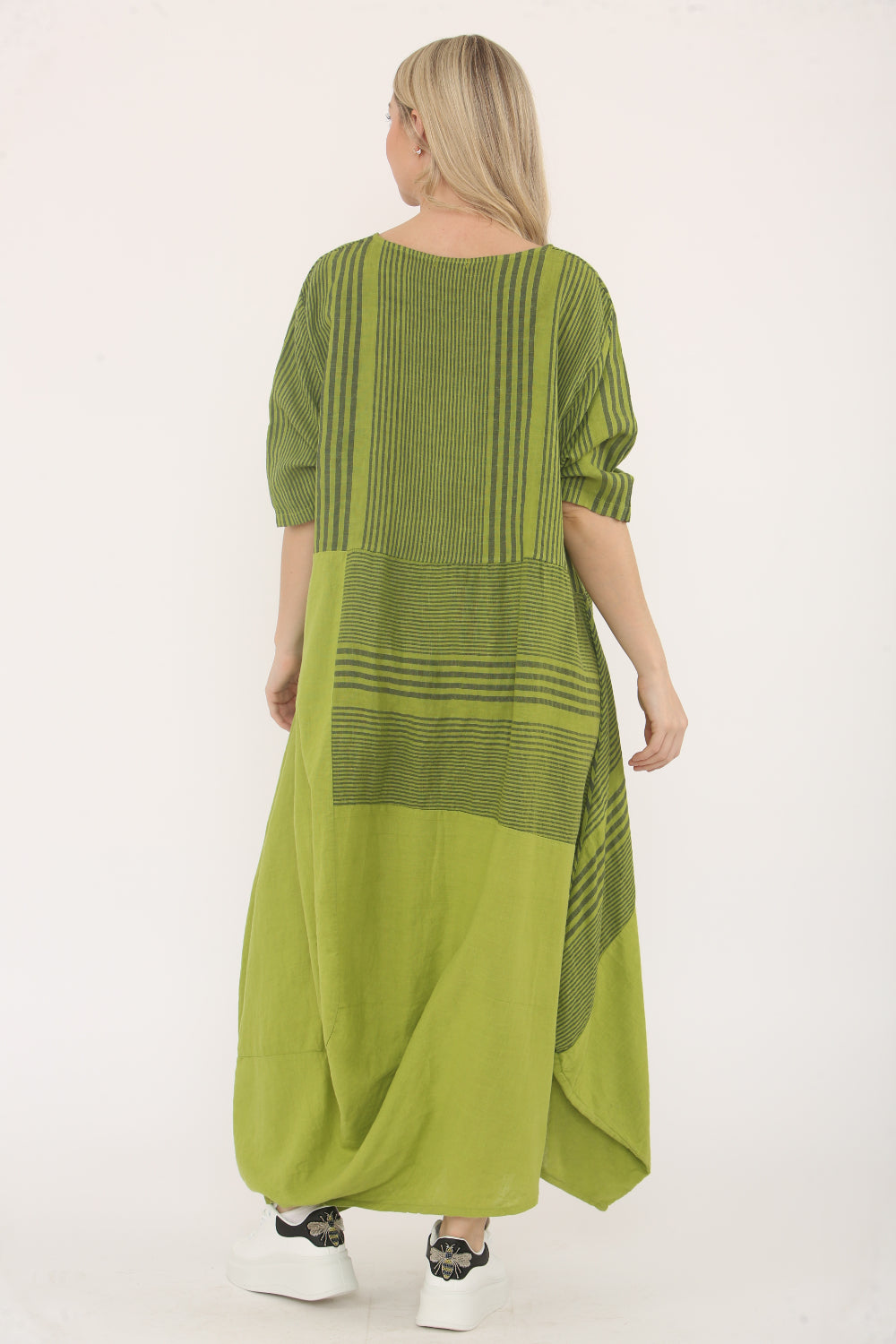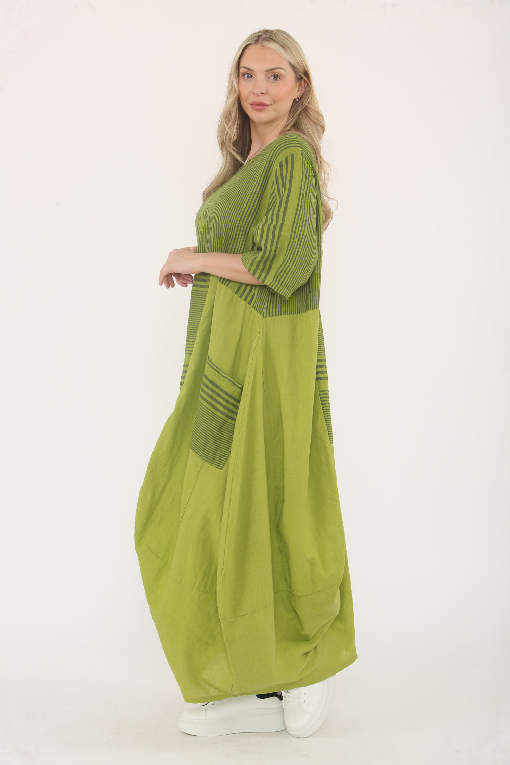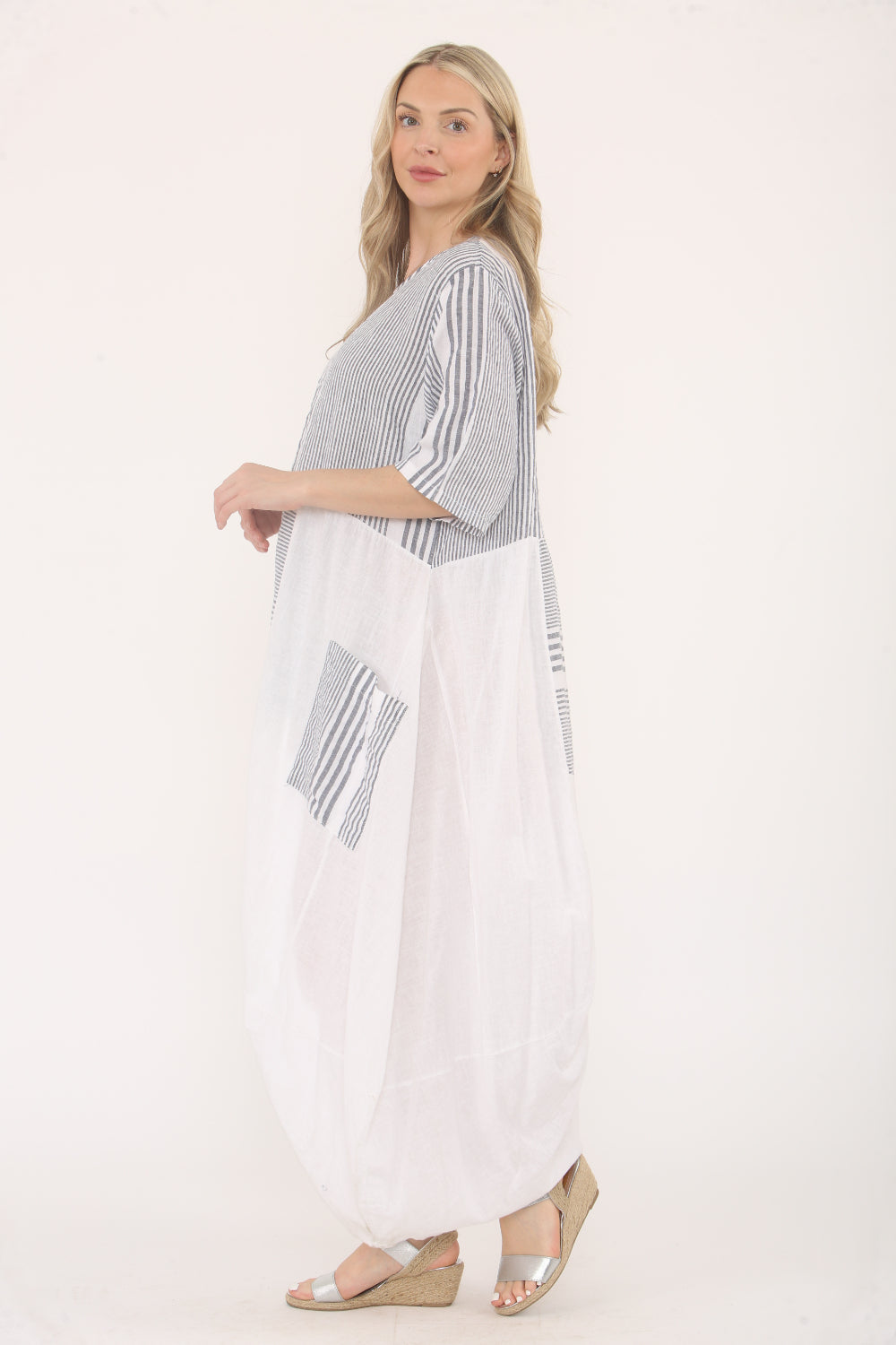 100% Linen Striped Oversized Bubble Hem Maxi Dress