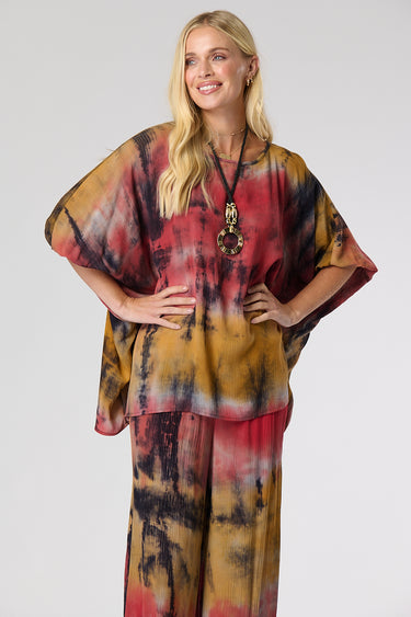 Stay comfortably stylish in this eye-catching top. It features an oversized silhouette, elasticated cuffs and a sophisticated batwing, mid length sleeve. Its abstract print, with an exquisite mix of colour, gives an elegant look with an artistic touch. Perfect for a stylish night out or a cosy day in. Complementary necklace* included.