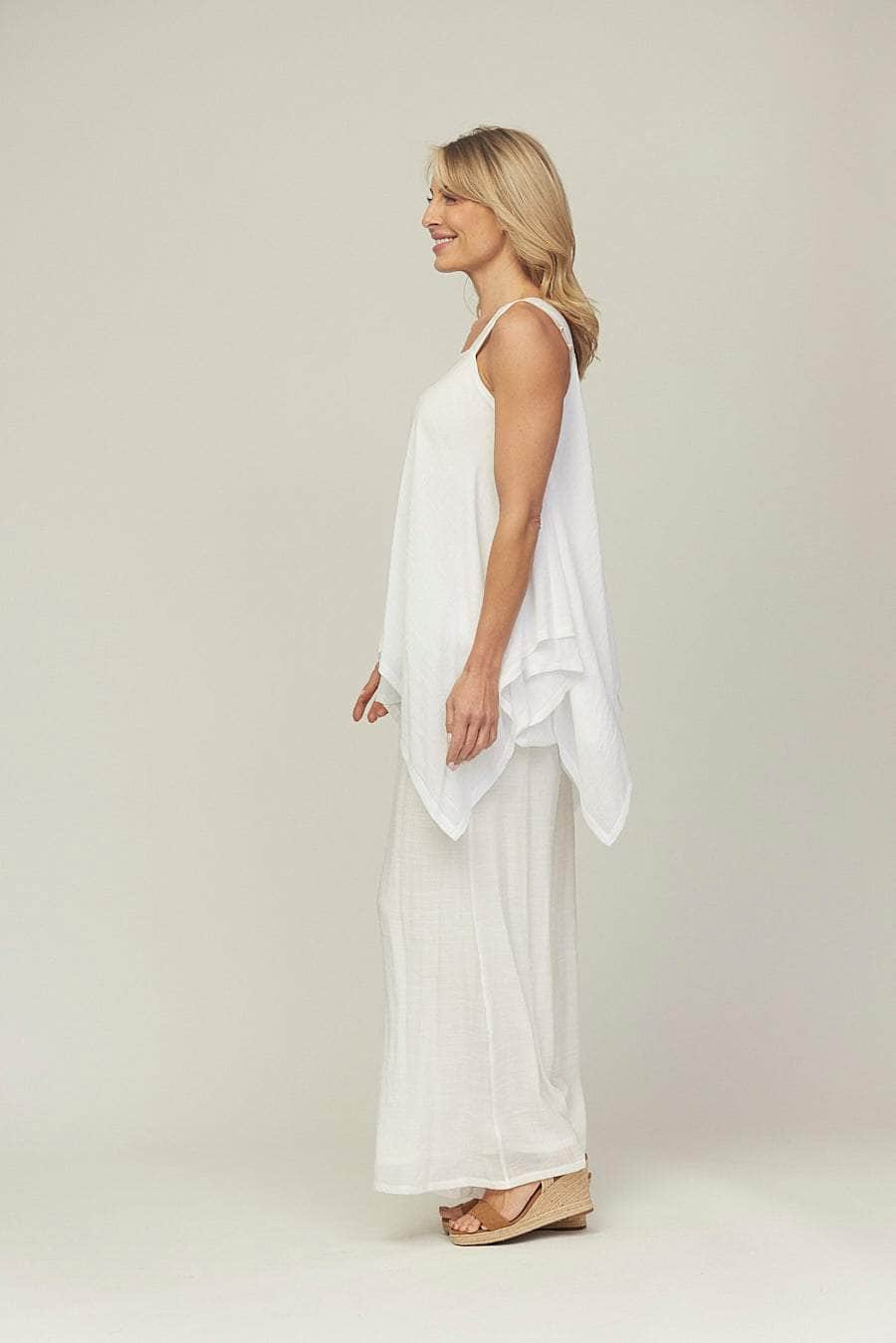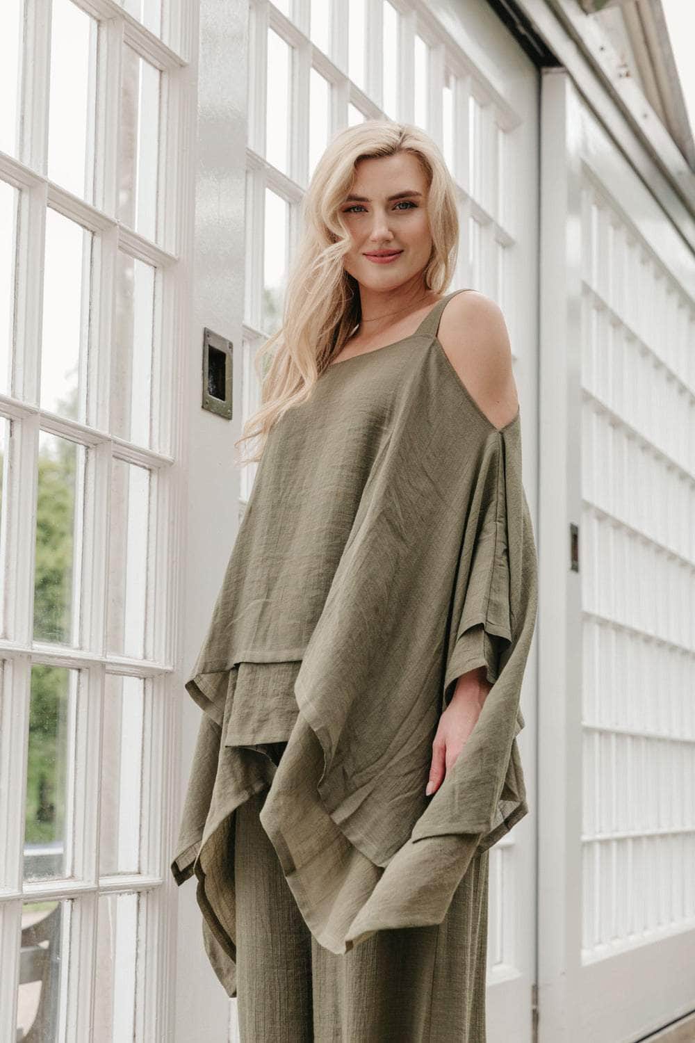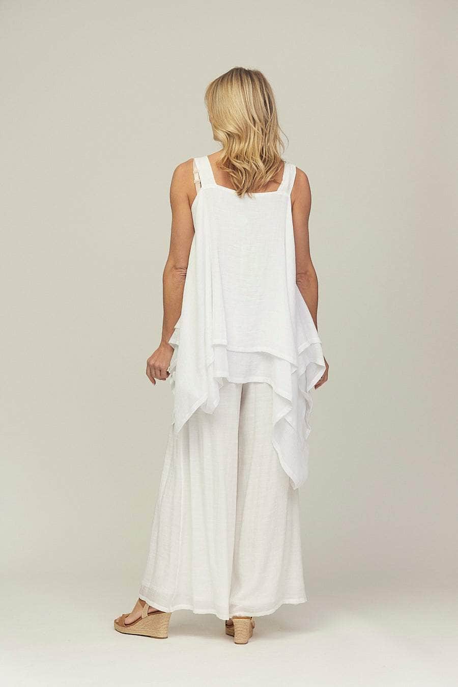 Look great and stay cool in this top. Constructed with a double layer of breathable, lightweight fabric, it features strappy open shoulders and a hanky hem for a stylish, relaxed look. Whether you're going for a casual outing or a more formal setting, this top is sure to be a summer staple.