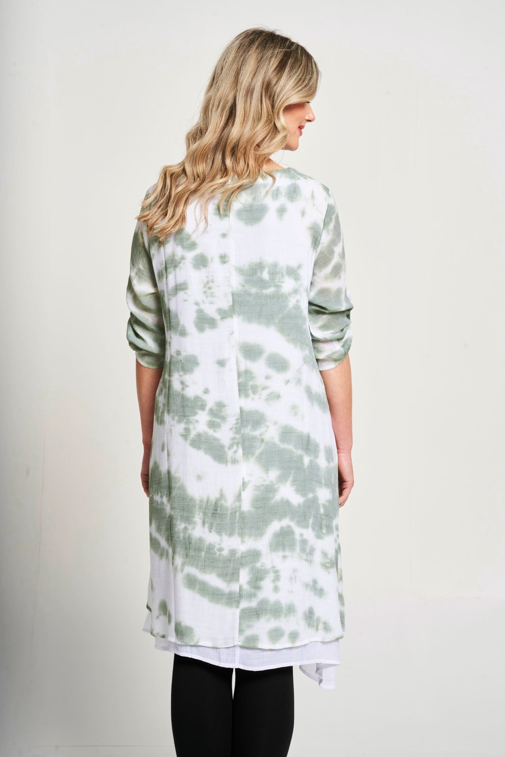 Saloos Tie Dye Ruched Sleeve Dress with Necklace
