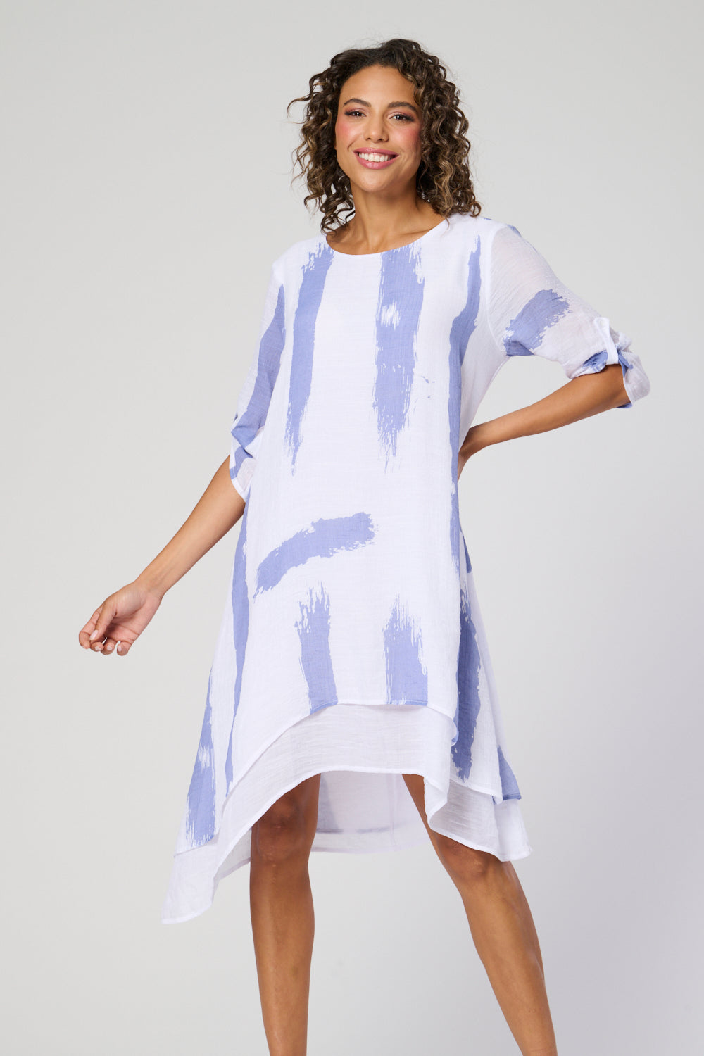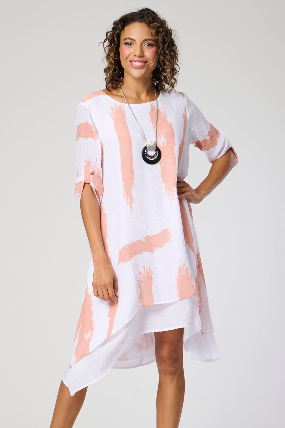 Saloos Ruched Sleeve Double Layer Dress with Necklace