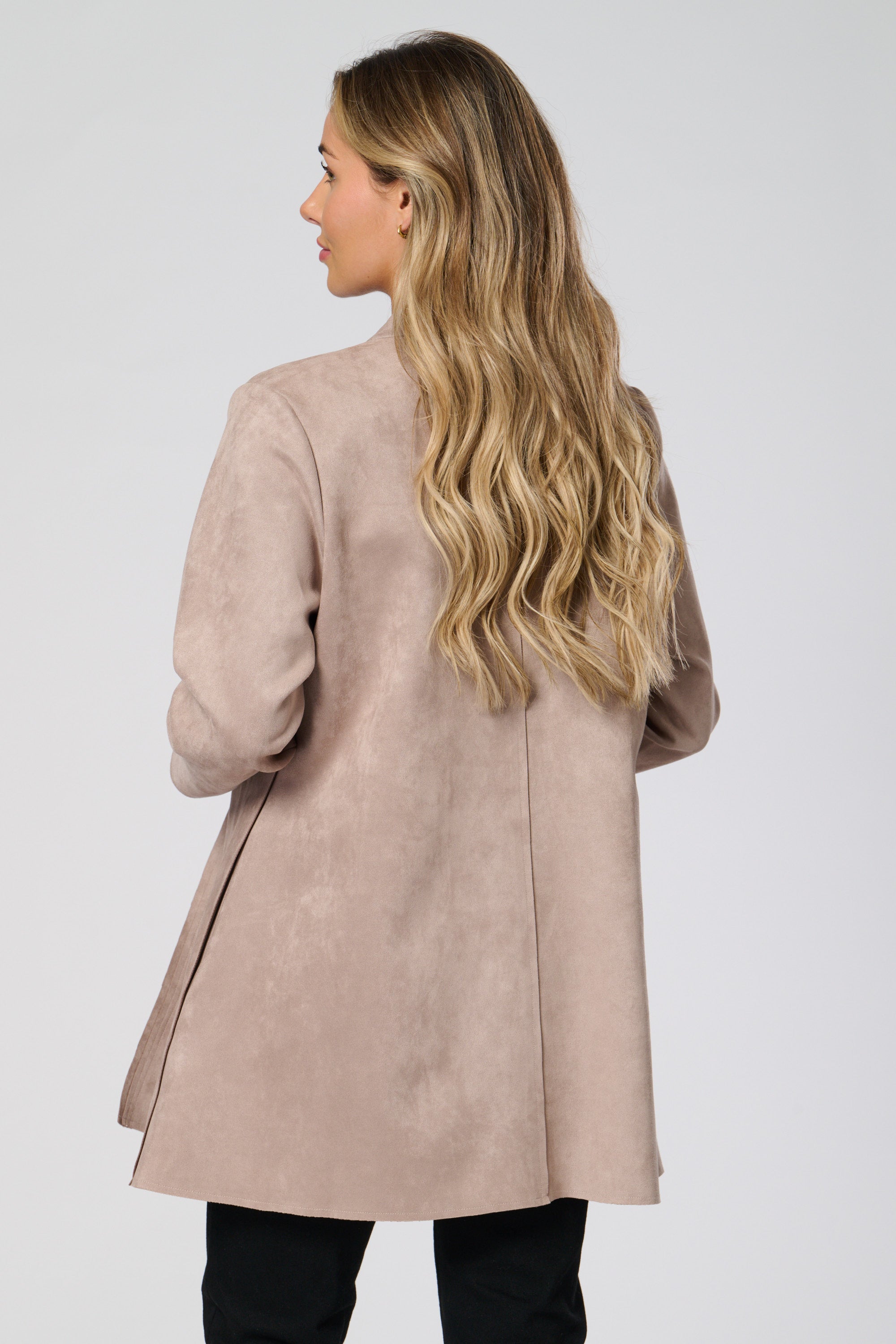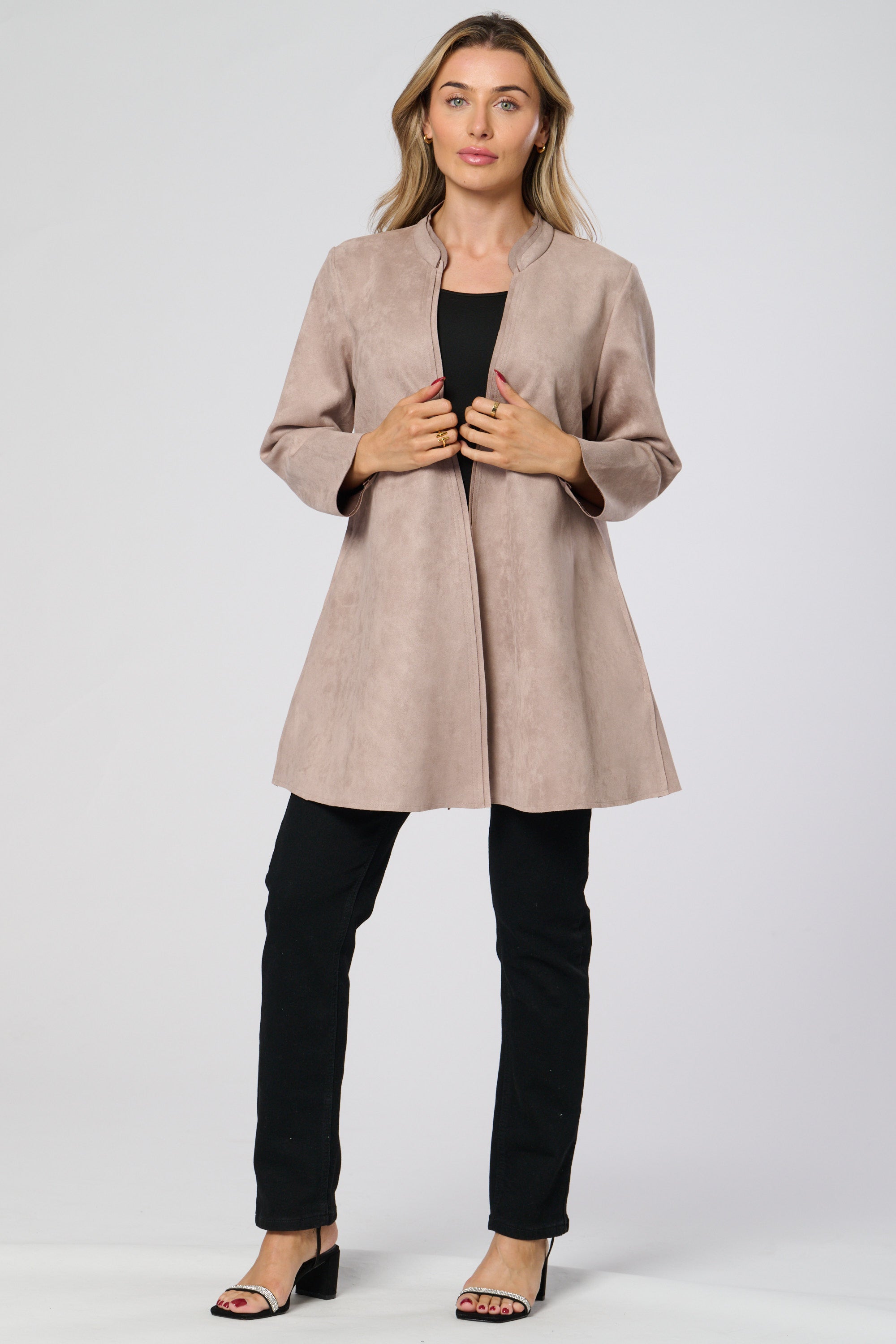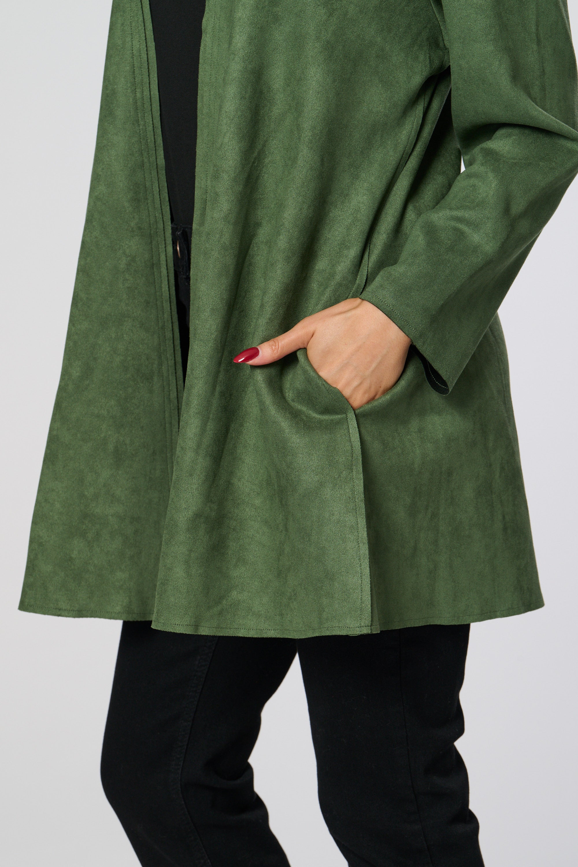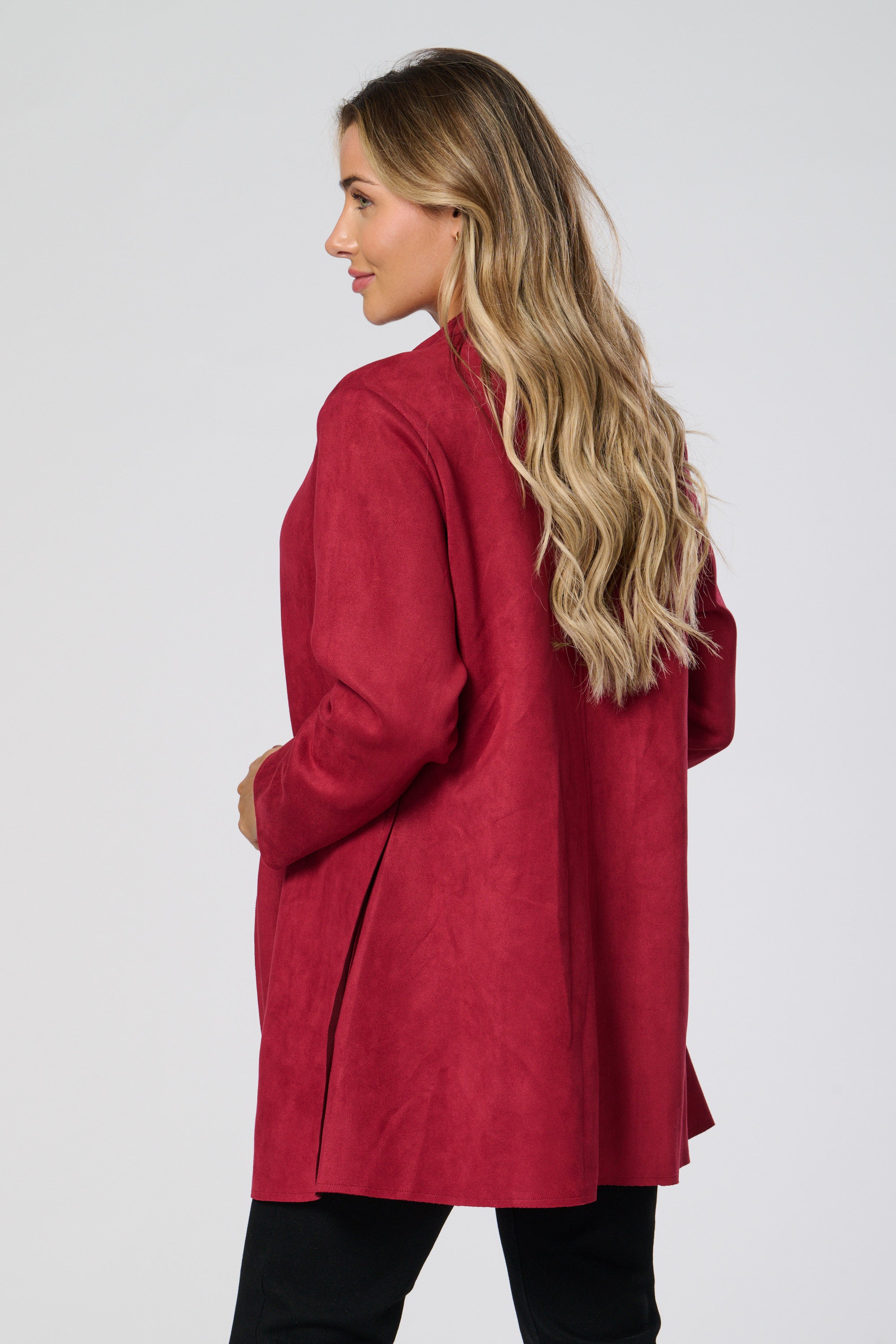 This suede jacket features a long sleeve, swing shape, and side pockets, providing comfort and style. The high-quality suede material gives a luxurious feel. Its versatile design makes it suitable for any occasion.