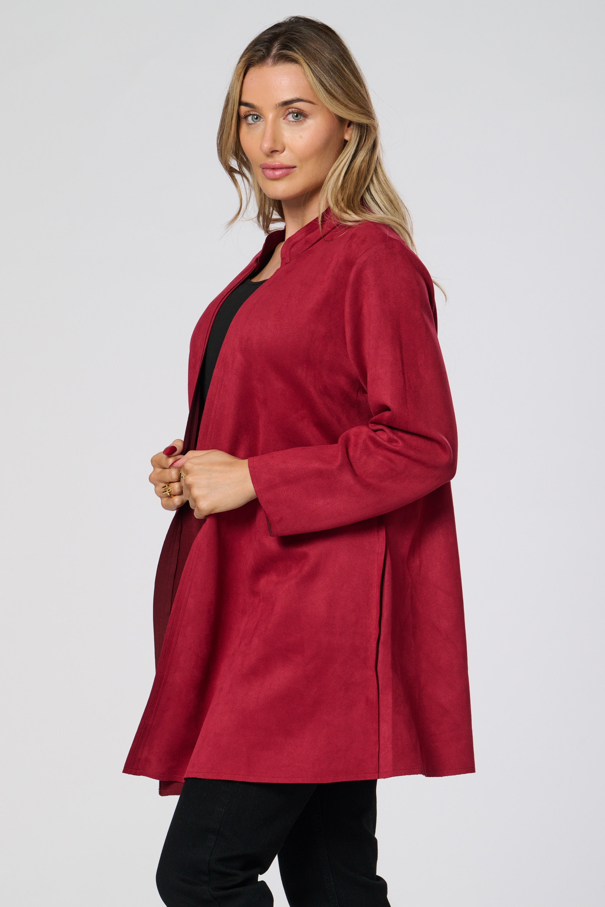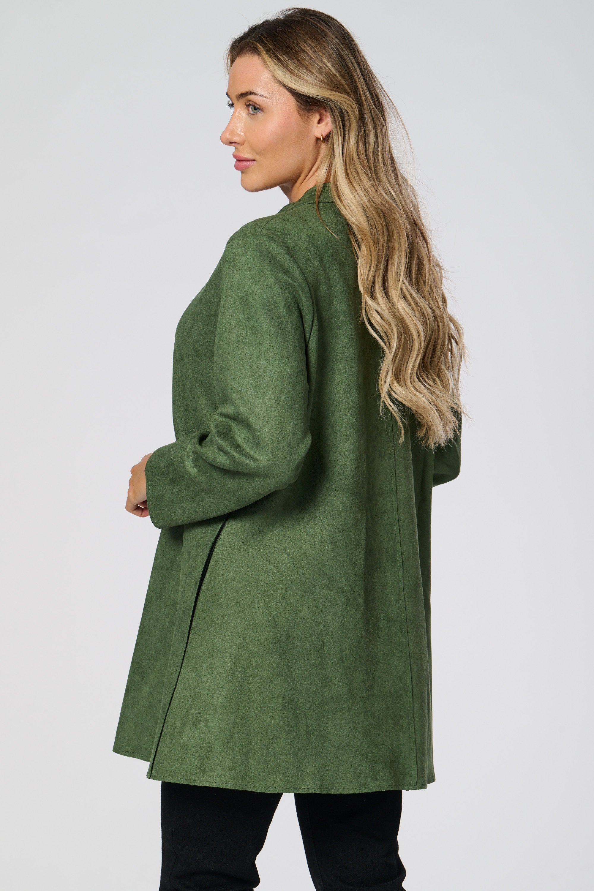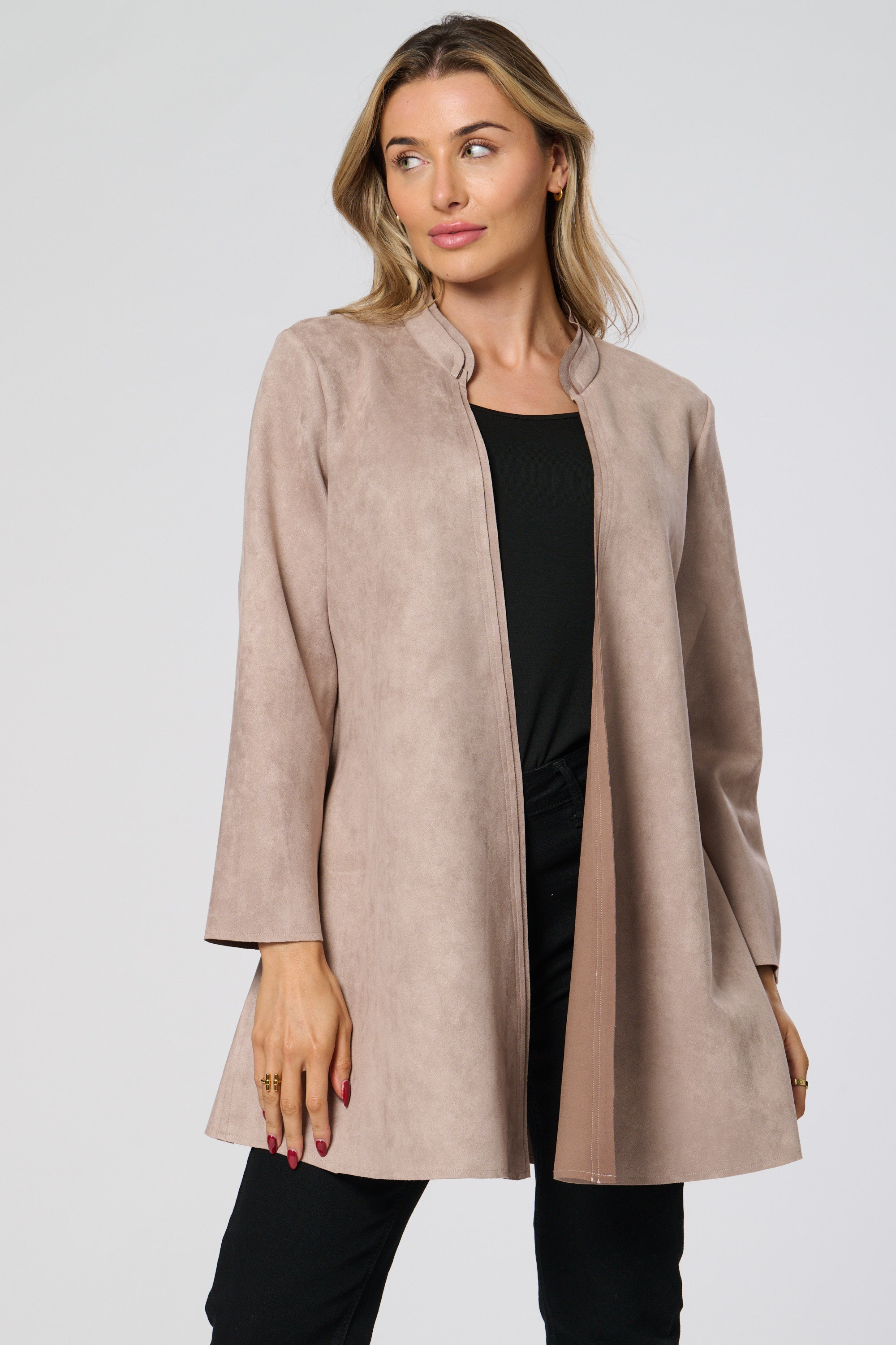 This suede jacket features a long sleeve, swing shape, and side pockets, providing comfort and style. The high-quality suede material gives a luxurious feel. Its versatile design makes it suitable for any occasion.